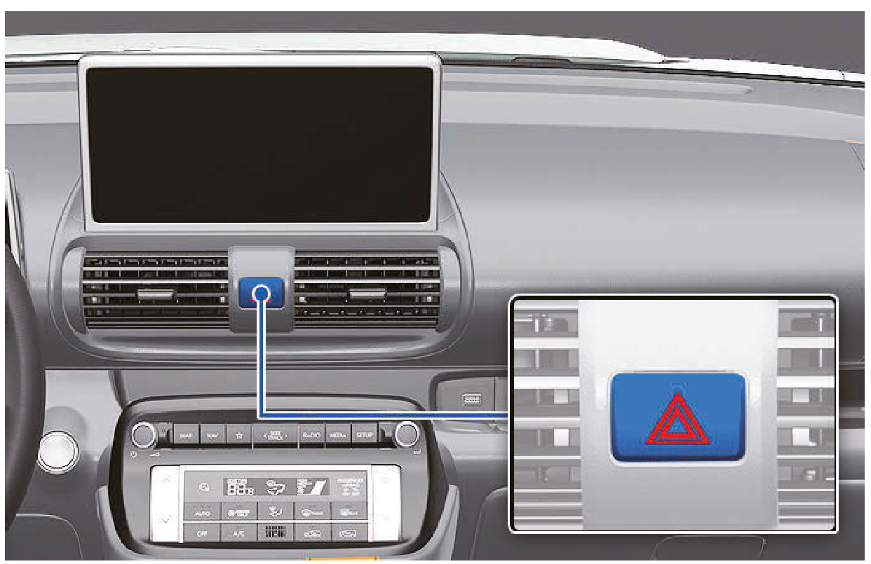 欲打開或關閉危險警示閃燈時,可於啟動/熄火按鈕在任何位置時,按下危險警示閃燈按鈕。危險警示閃燈按鈕位於中央面板。所有的方向燈將會同時閃爍。