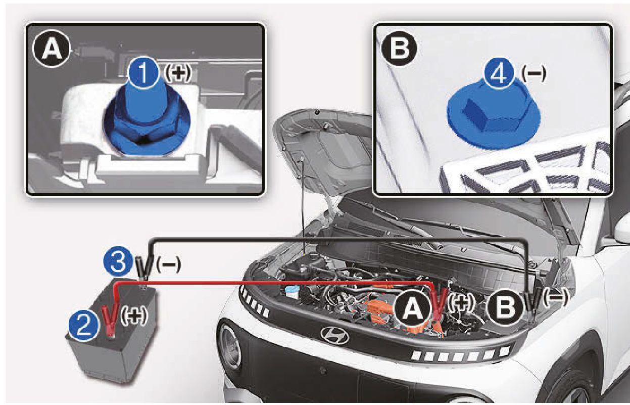 跨接啟動車輛時,請使用馬達室內的跨接端子。
