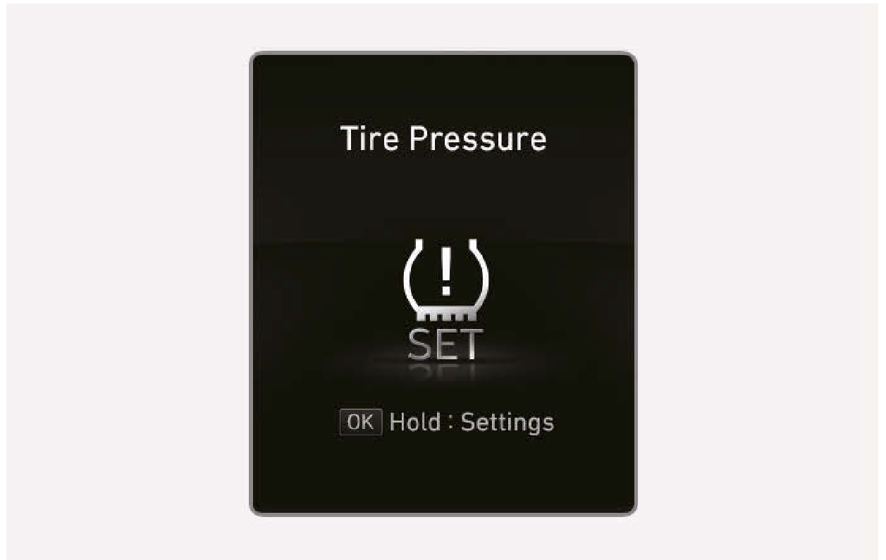 - 使用、 (上、下)開關,在儀錶組選擇Tire Pressure (胎壓)。