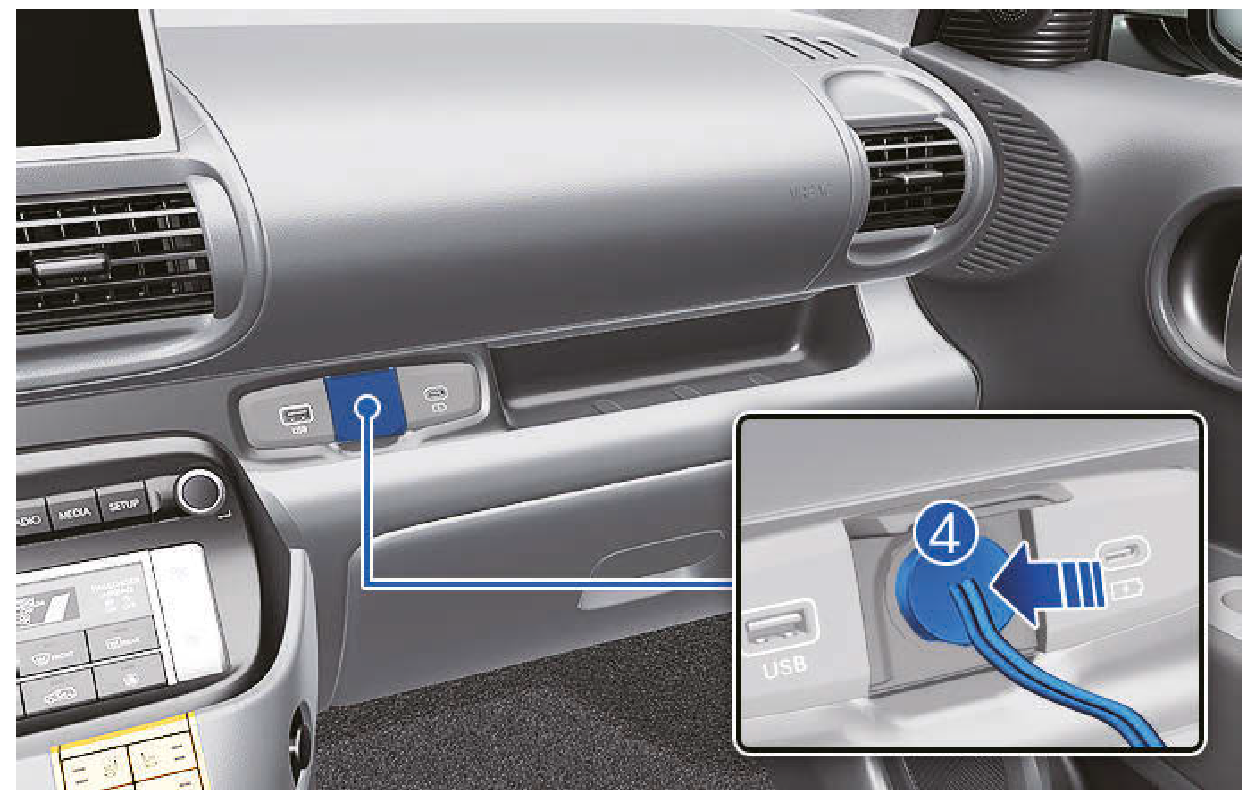 確認將壓縮機ON/OFF開關切換到OFF,並將壓縮機電源線(4)插入車輛的電源插座。