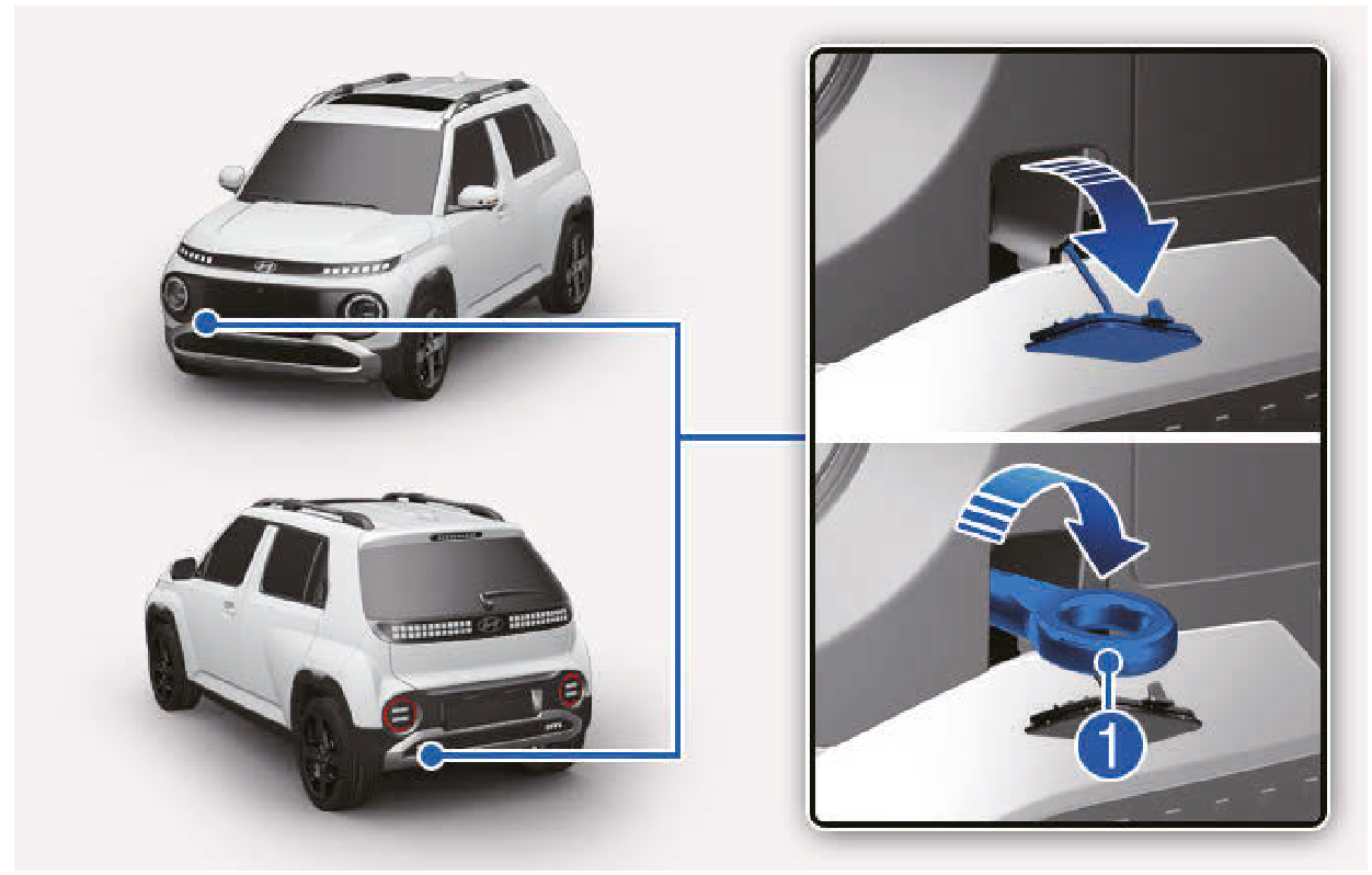 打開尾門,並從工具盒取出拖車鉤(1)。