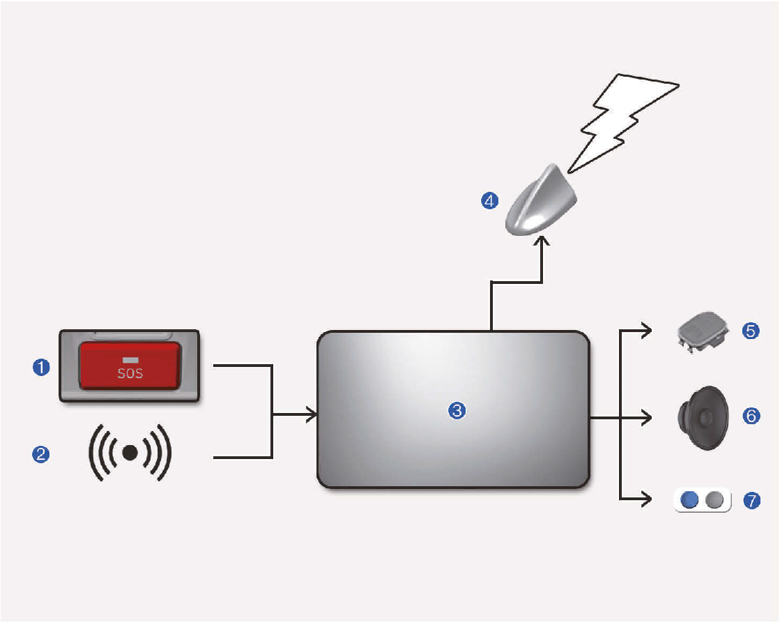 “其他事故” 是指在歐洲道路發生,會造成人員受傷和/或需要提供援助的任何事故(僅具備本系統法規的國家/地區適用)。發生任何事故時,必須停車,按下車主手冊上所示的SOS按鈕(按鈕的位置在 “泛歐eCall (若有配備)” 章節的圖示中指示)。進行呼叫時,系統會收集車輛相關的資訊(執行呼叫者),然後車輛會和公共安全應答點(PSAP)的服務人員連線,以告知緊急呼叫的原因。