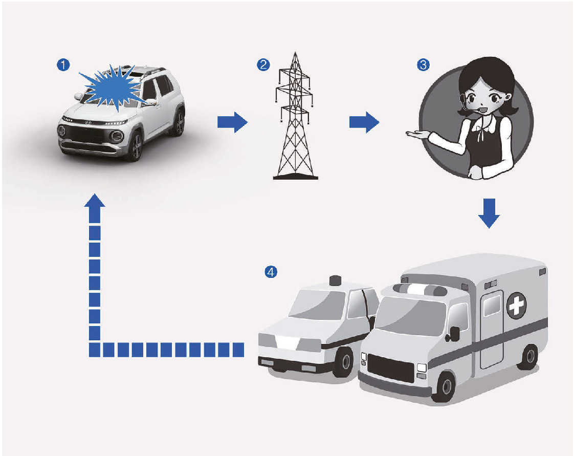 儲存在泛歐eCall系統的資料傳送到救援中心,以適當的救援操作協助駕駛人和乘客後,資料會在救援操作完成後刪除。