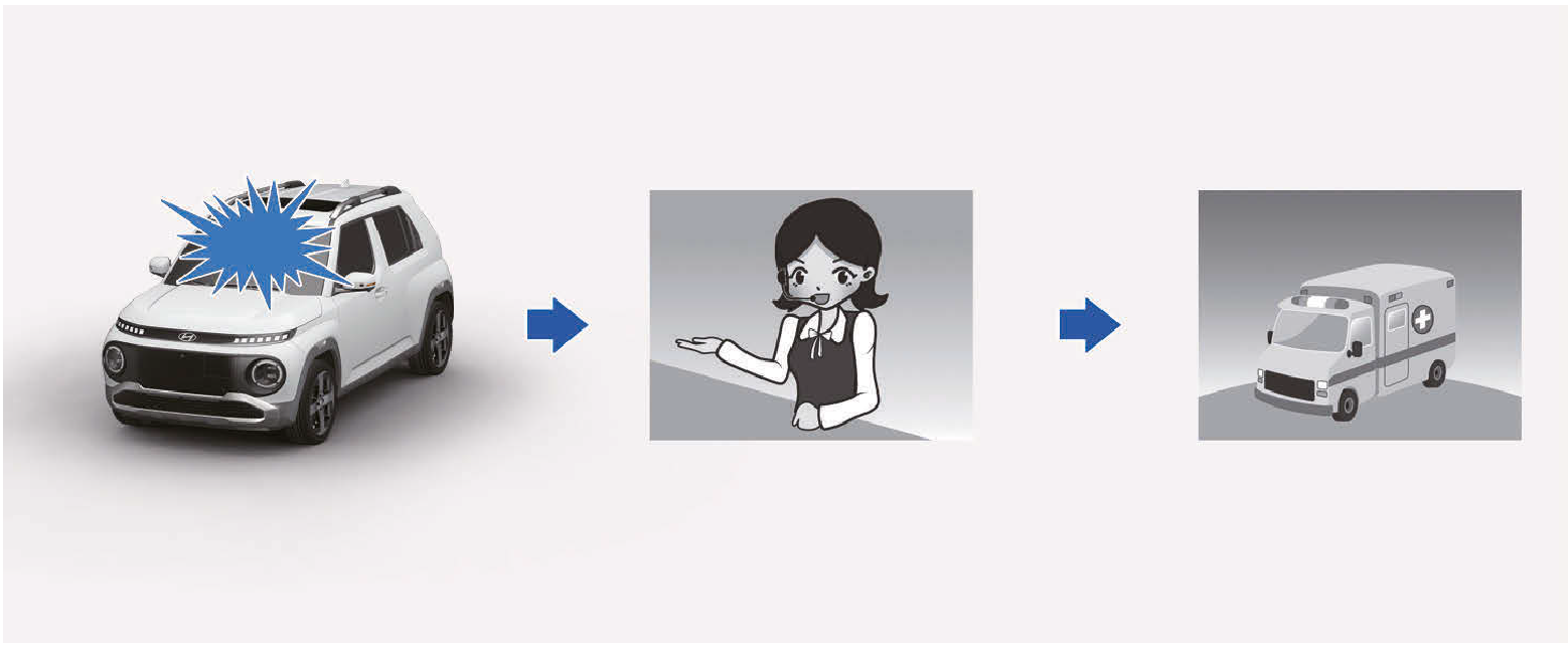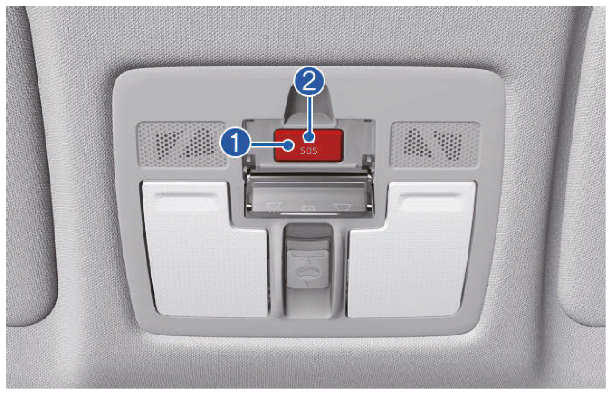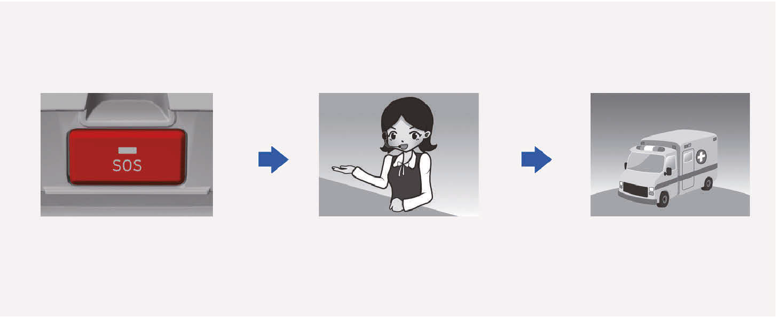 - 按下SOS按鈕,按下SOS按鈕的裝置登錄會以無線電話通訊網路進行,且車輛及其位置相關的最小資料集會依據裝置的技術要求收集。之後,會和泛歐eCall系統人員建立連線,以釐清緊急呼叫的原因(條件)。