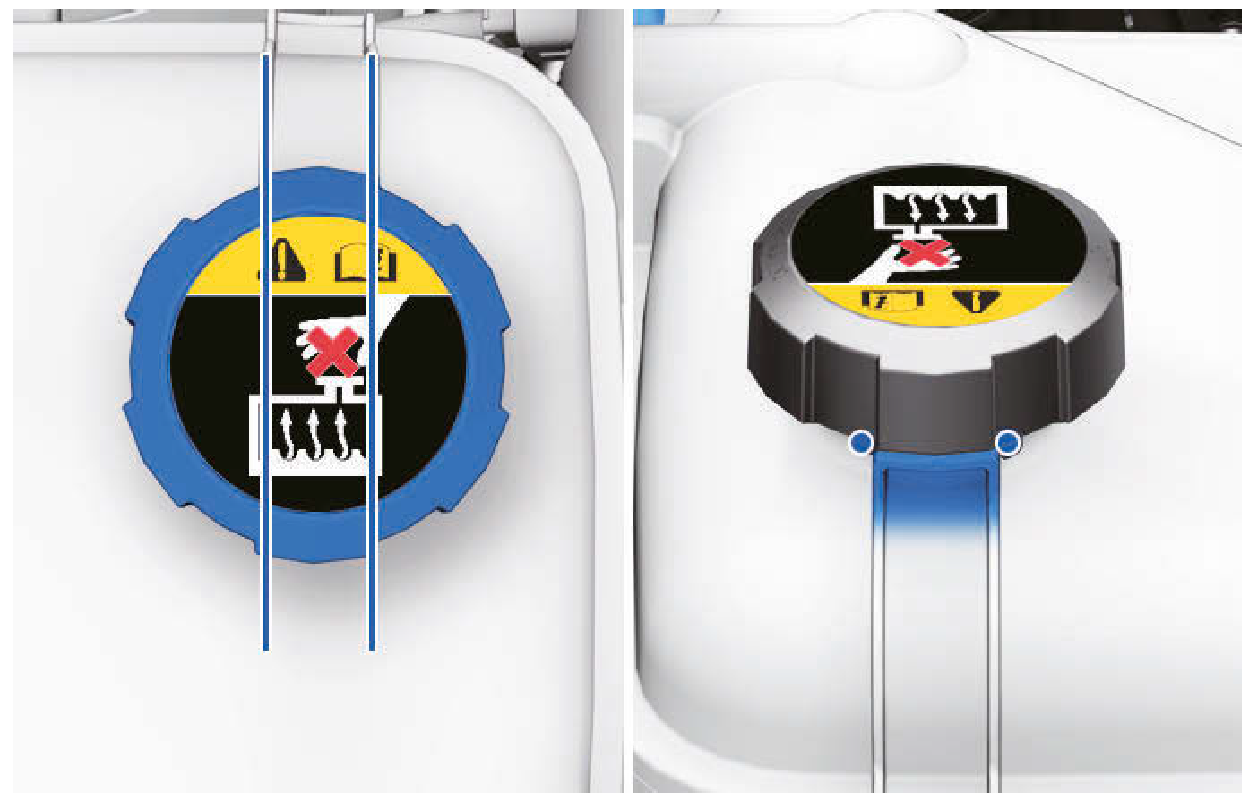 - 添加冷卻液後,確認冷卻液蓋正確關閉。否則馬達可能會在駕駛時過熱。