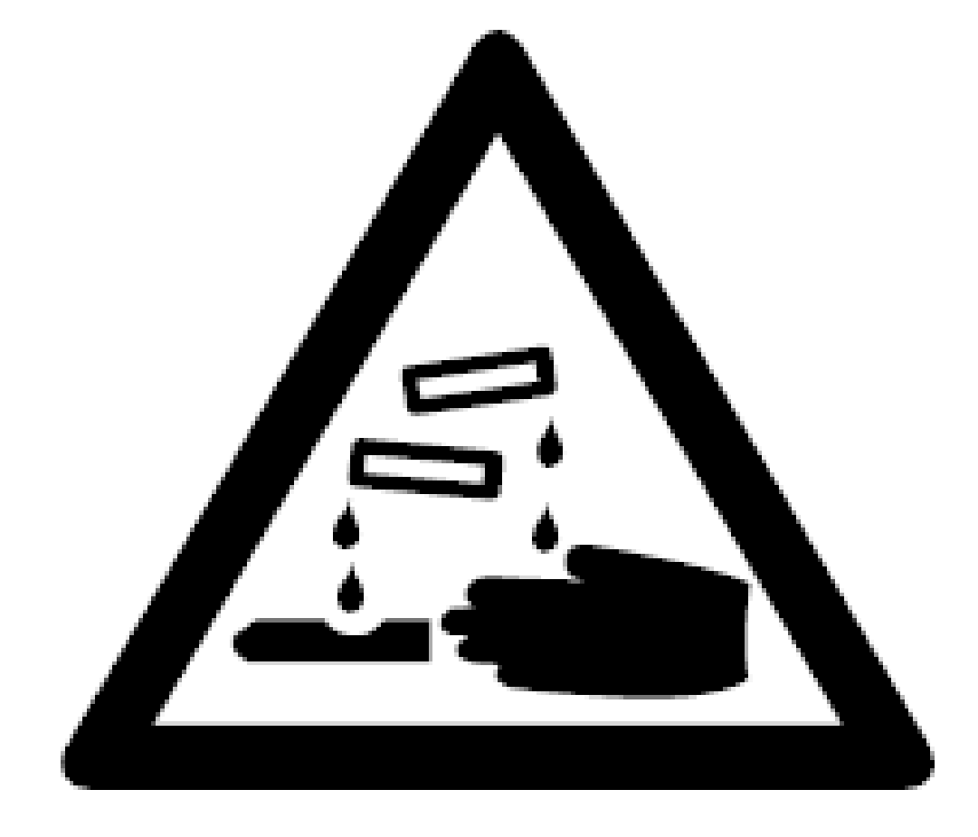 如果酸液接觸到眼睛,必須立即使用清水清洗眼睛至少15分鐘,並立即就醫。如果酸液接觸到皮膚,必須徹底清洗接觸部位。如果感覺到疼痛或灼熱感,必須立即就醫。