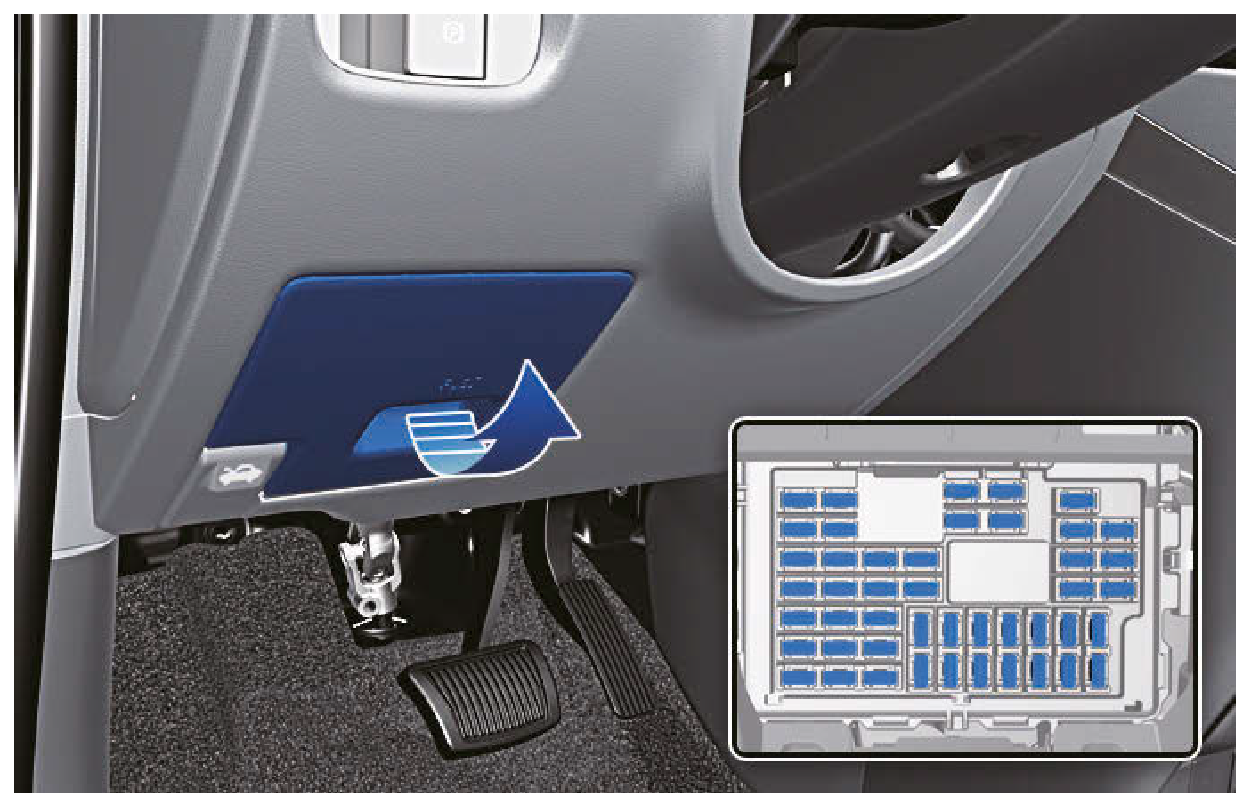 如果頭燈或其他電氣組件不作用,但保險絲正常,則檢查馬達室內的保險絲面板。