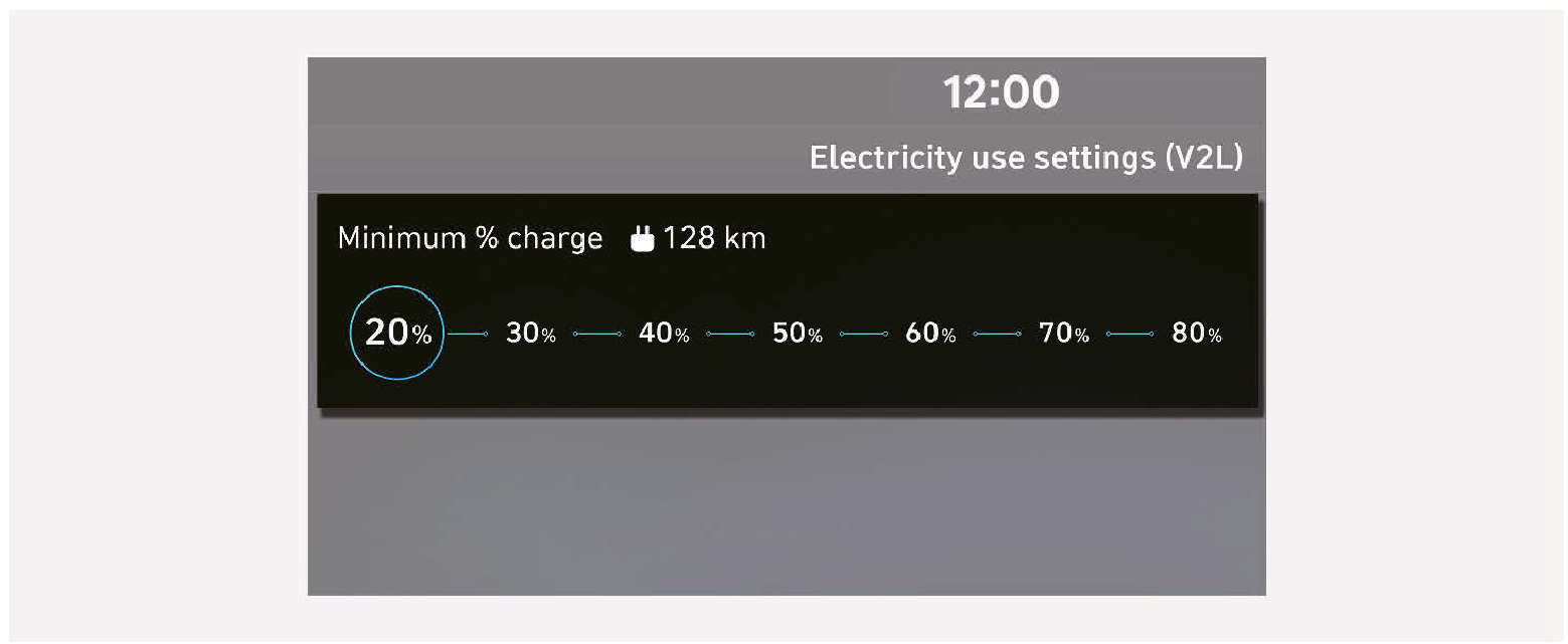 - 電池充電量達到設定的電池放電限制時,V2L功能會自動關閉。