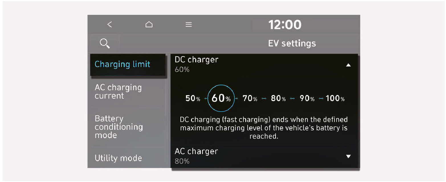 設定AC充電機和DC充電機各自的目標電池充電量。