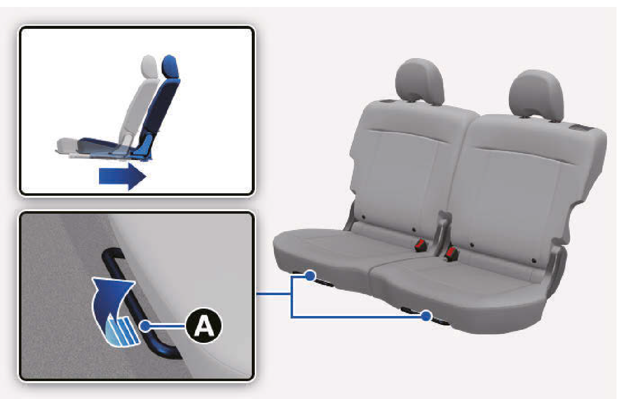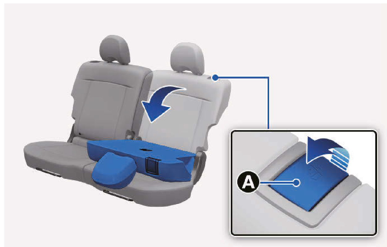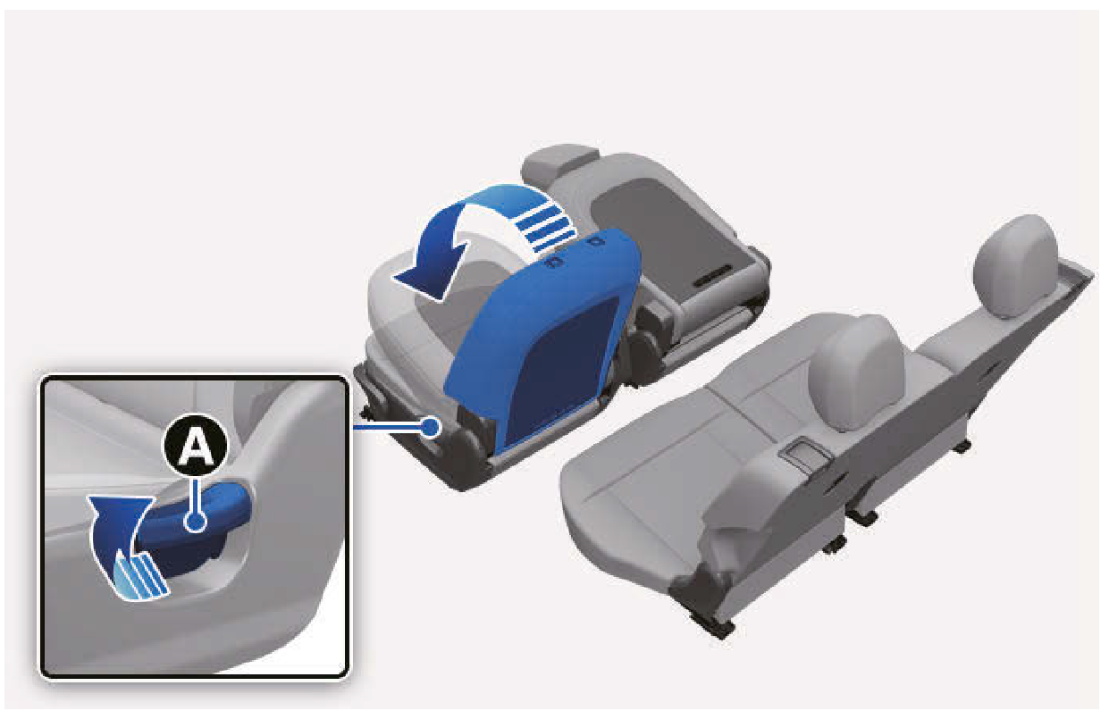 將椅背摺疊桿[A]向上拉,然後將座椅向車輛前方摺疊。
