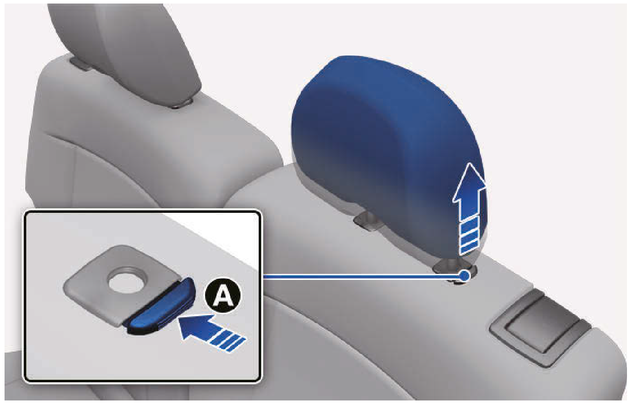 - 壓下釋放按鈕[A],同時將頭枕向上拉。