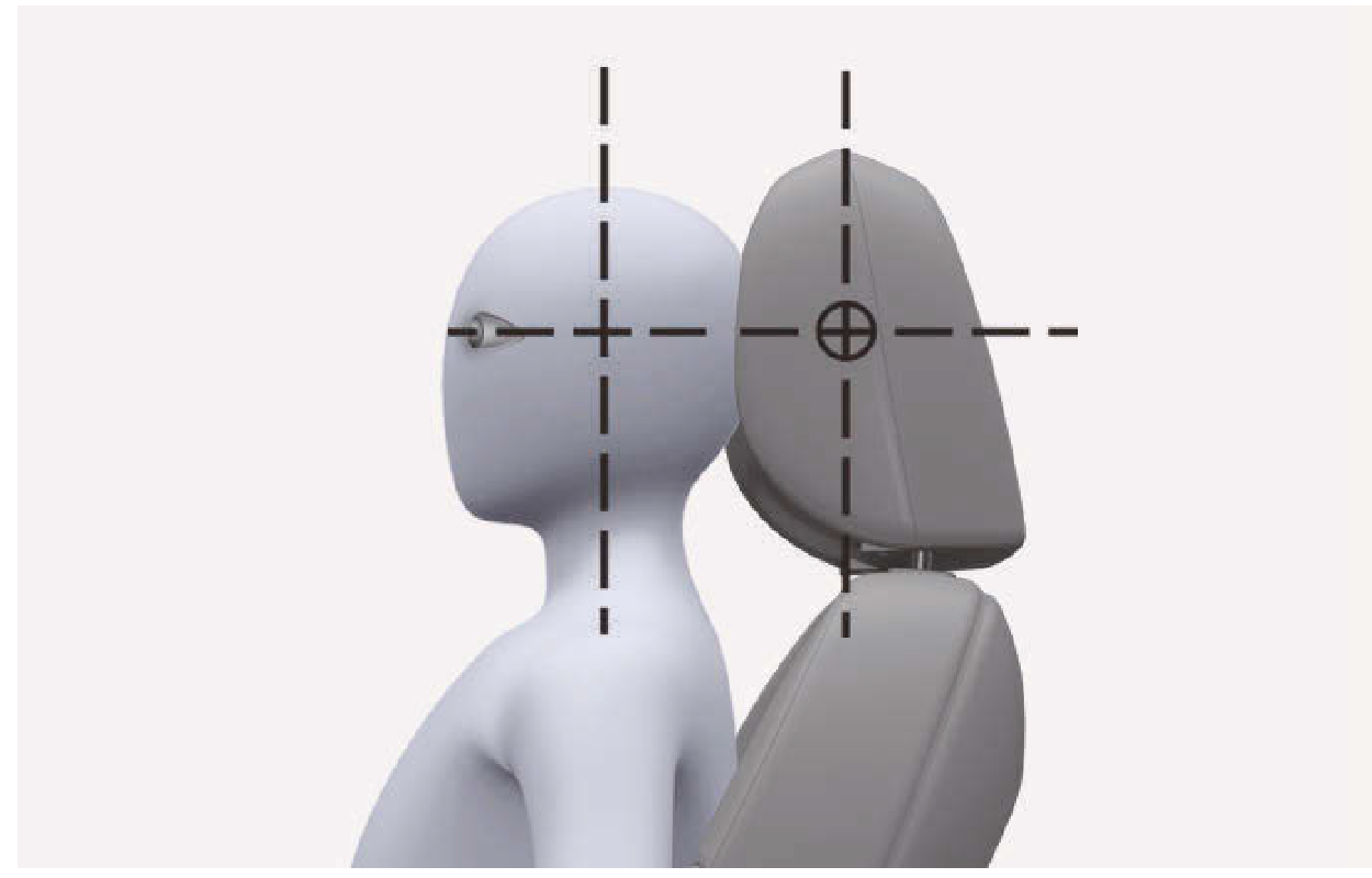 - 調整頭枕,使頭枕中央和眼睛上緣高度相同。