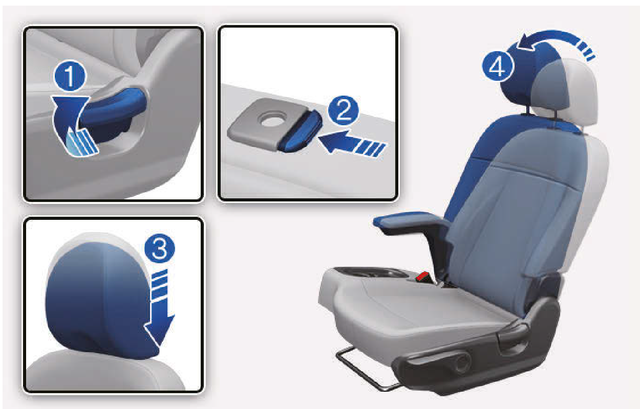 藉由將頭枕向前拉到需要的位置,可將頭枕向前調整到3個不同的位置。