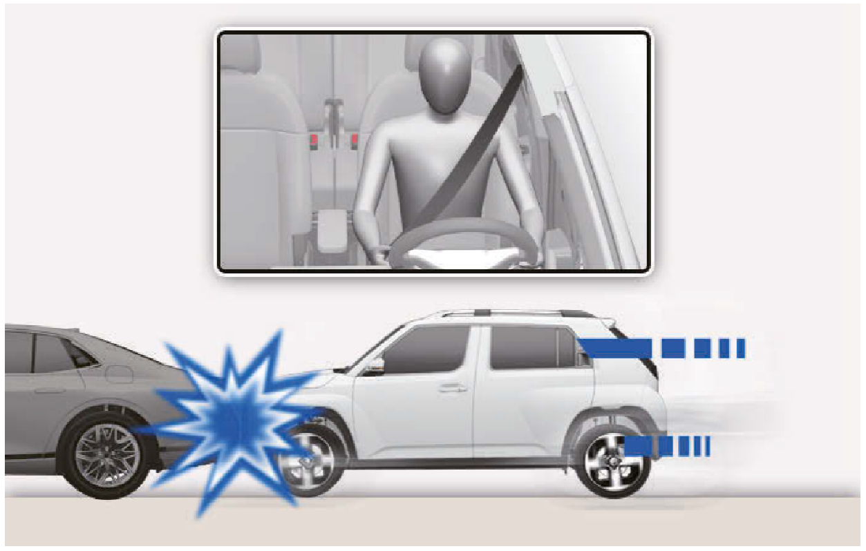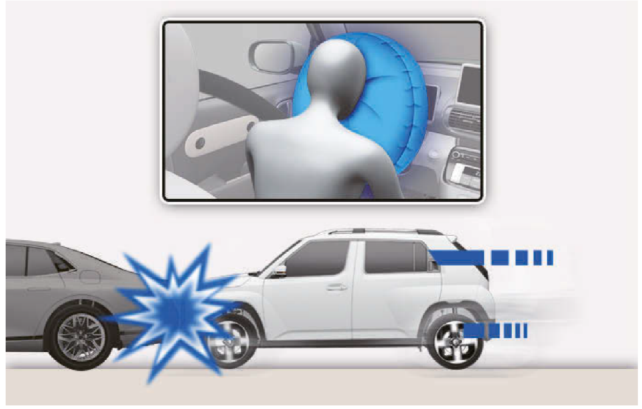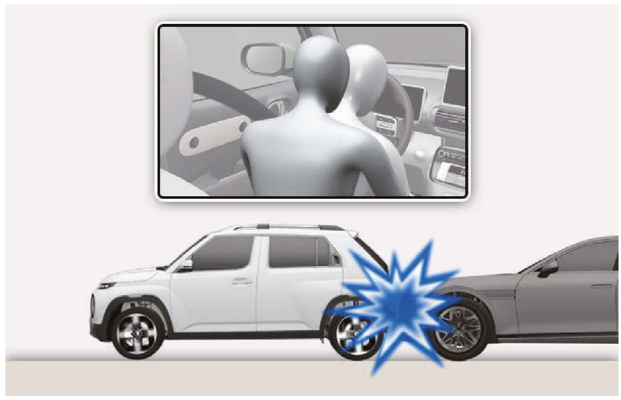 前氣囊沒有後方撞擊時充氣的設計,因為乘員在後方撞擊時會往後仰。