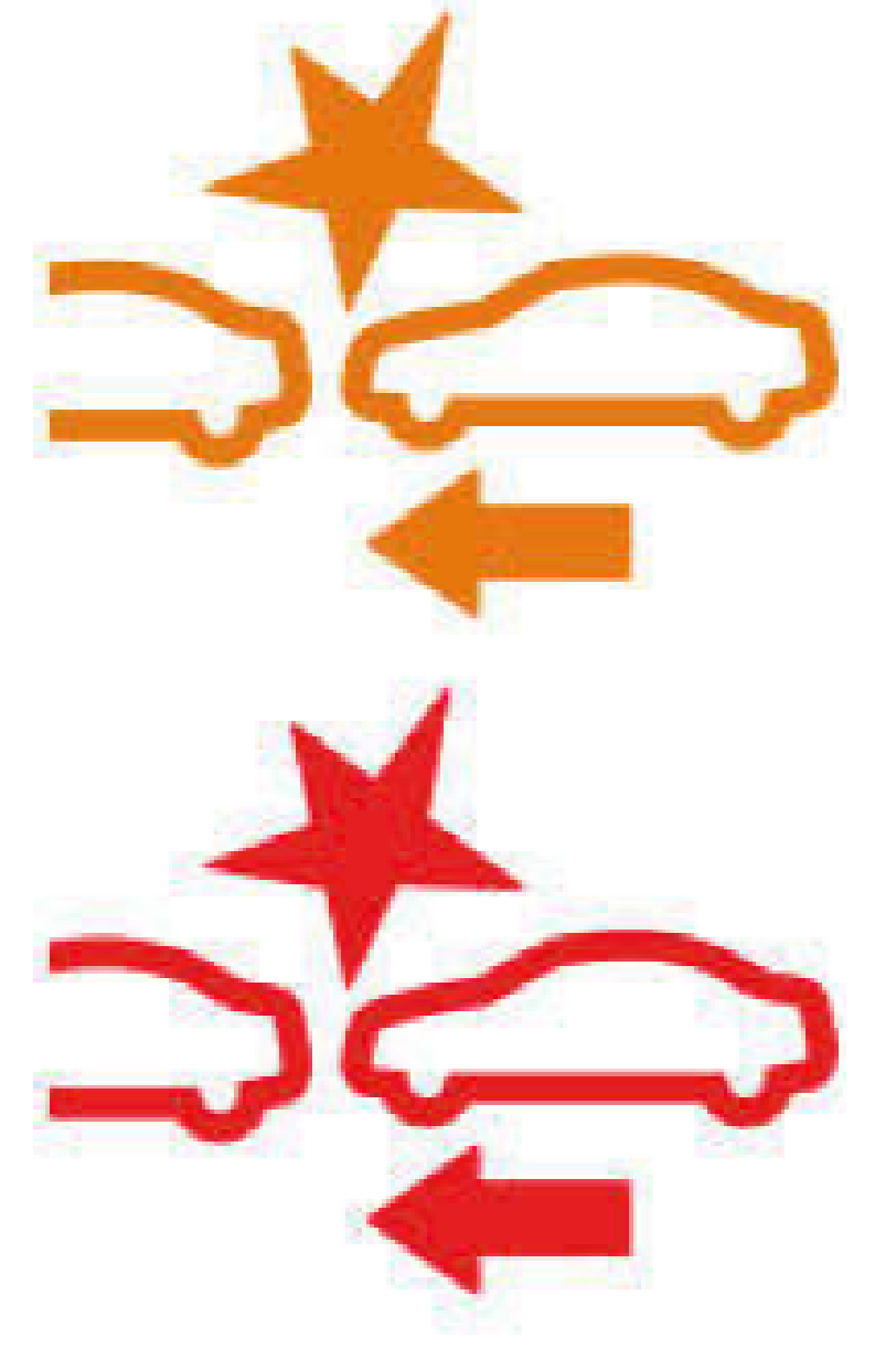 黃色:前方碰撞避免輔助的前方安全取消、停用或偵測到故障時。