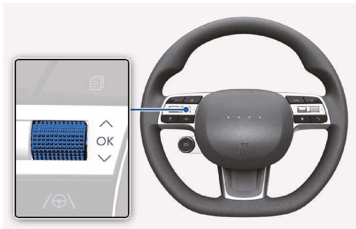 欲切換旅程模式時,按下方向盤上的 、開關。