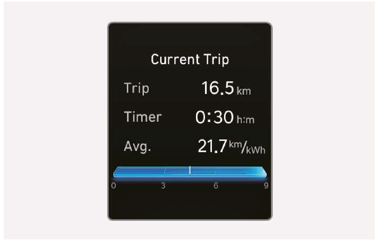 旅程距離、總駕駛時間、平均能量消耗和即時能量消耗會顯示。