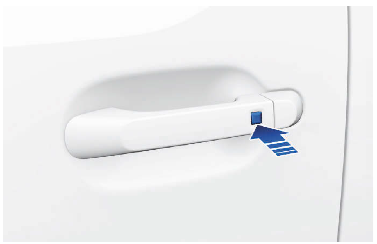 - 車門把手按鈕僅在智慧型鑰匙位於車門外把手1公尺範圍內時才可操作。