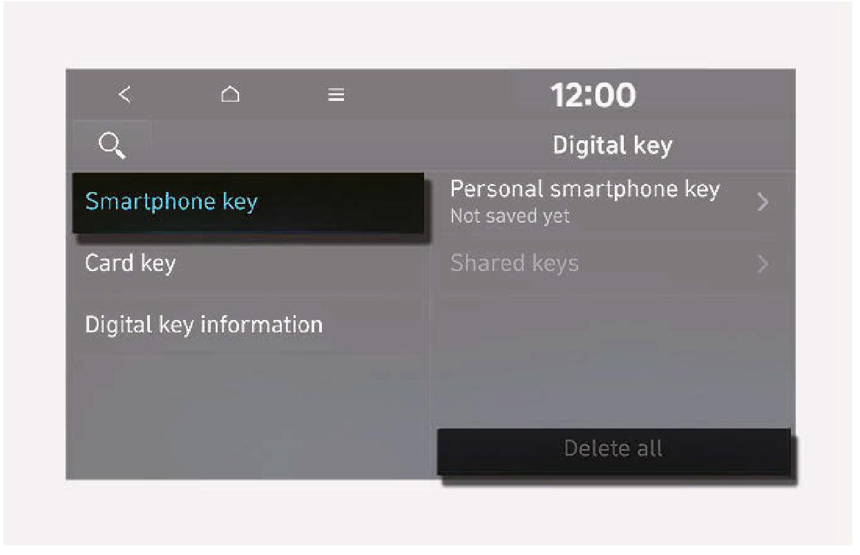 - 如果沒有註冊的數位鑰匙(智慧型手機),“Delete all (刪除全部)” 按鈕將會停用。