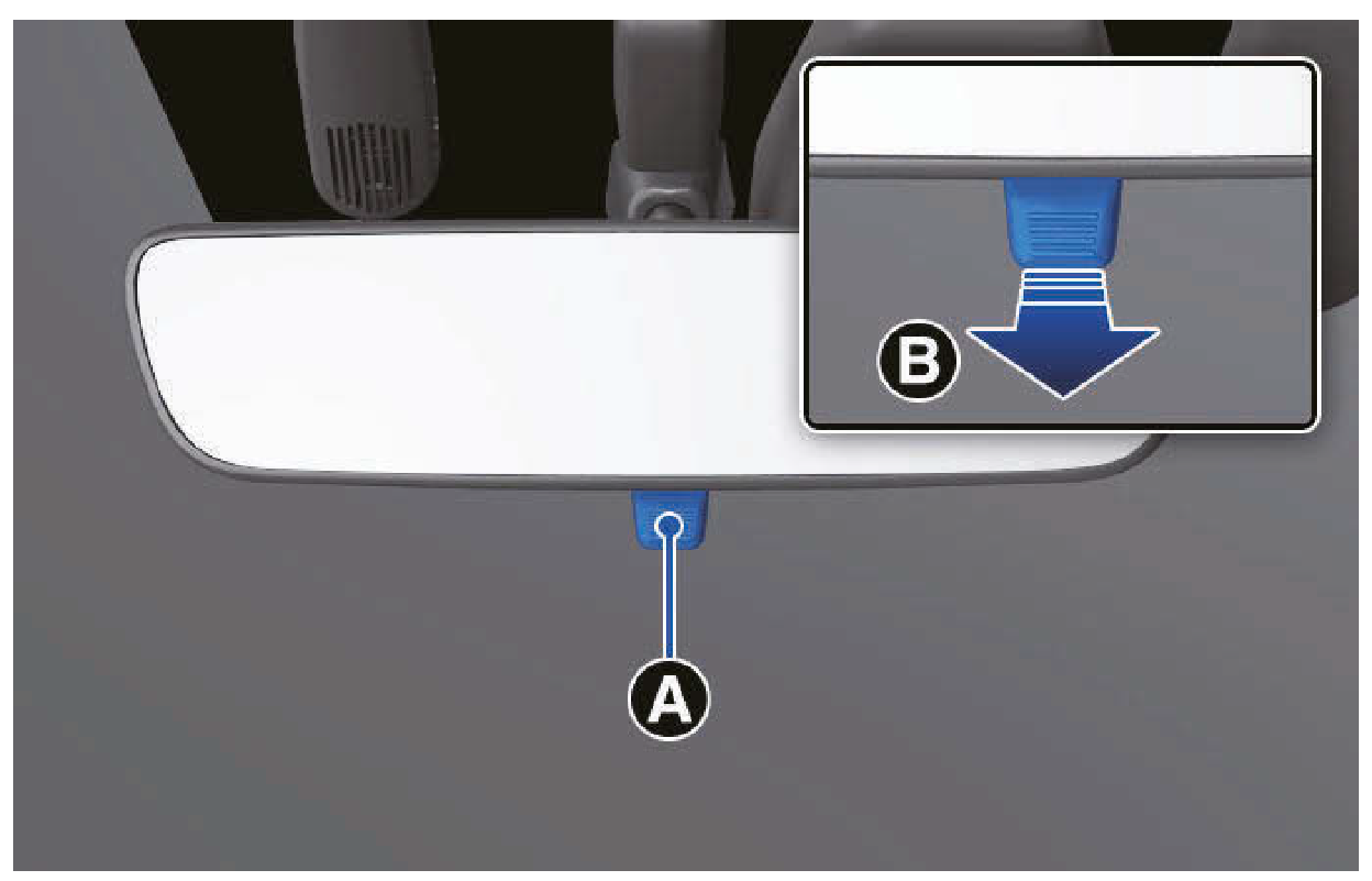 在夜間駕駛之前,將日間/夜間調整桿拉向自己方向可減少來自後方車輛頭燈的眩光。