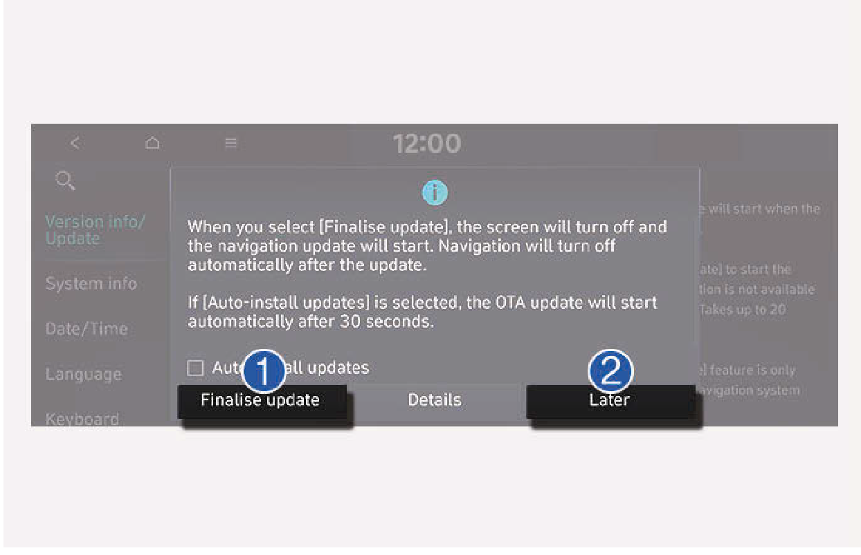 欲開始更新時,按下 “Finalise update (完成更新)” (1)。