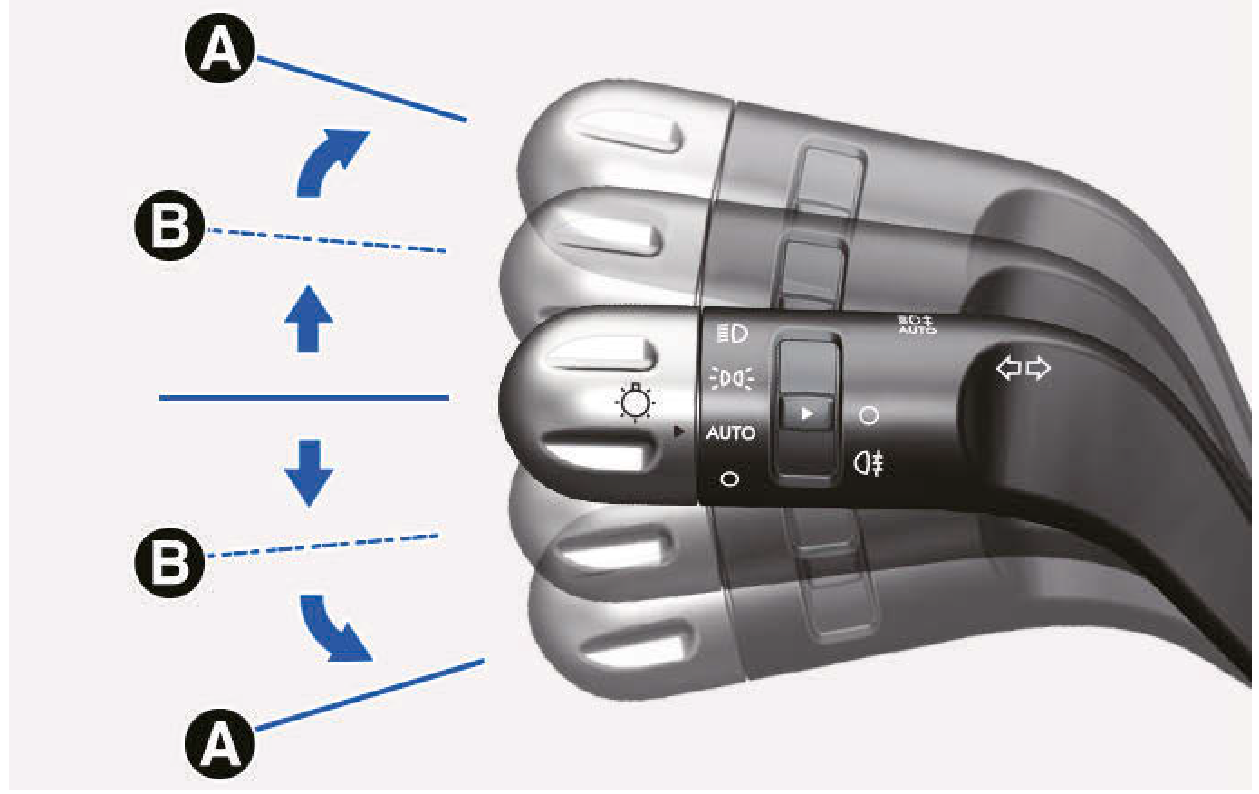 欲啟用單觸方向燈時,將方向燈控制桿向上或向下移動到位置[B],然後釋放。