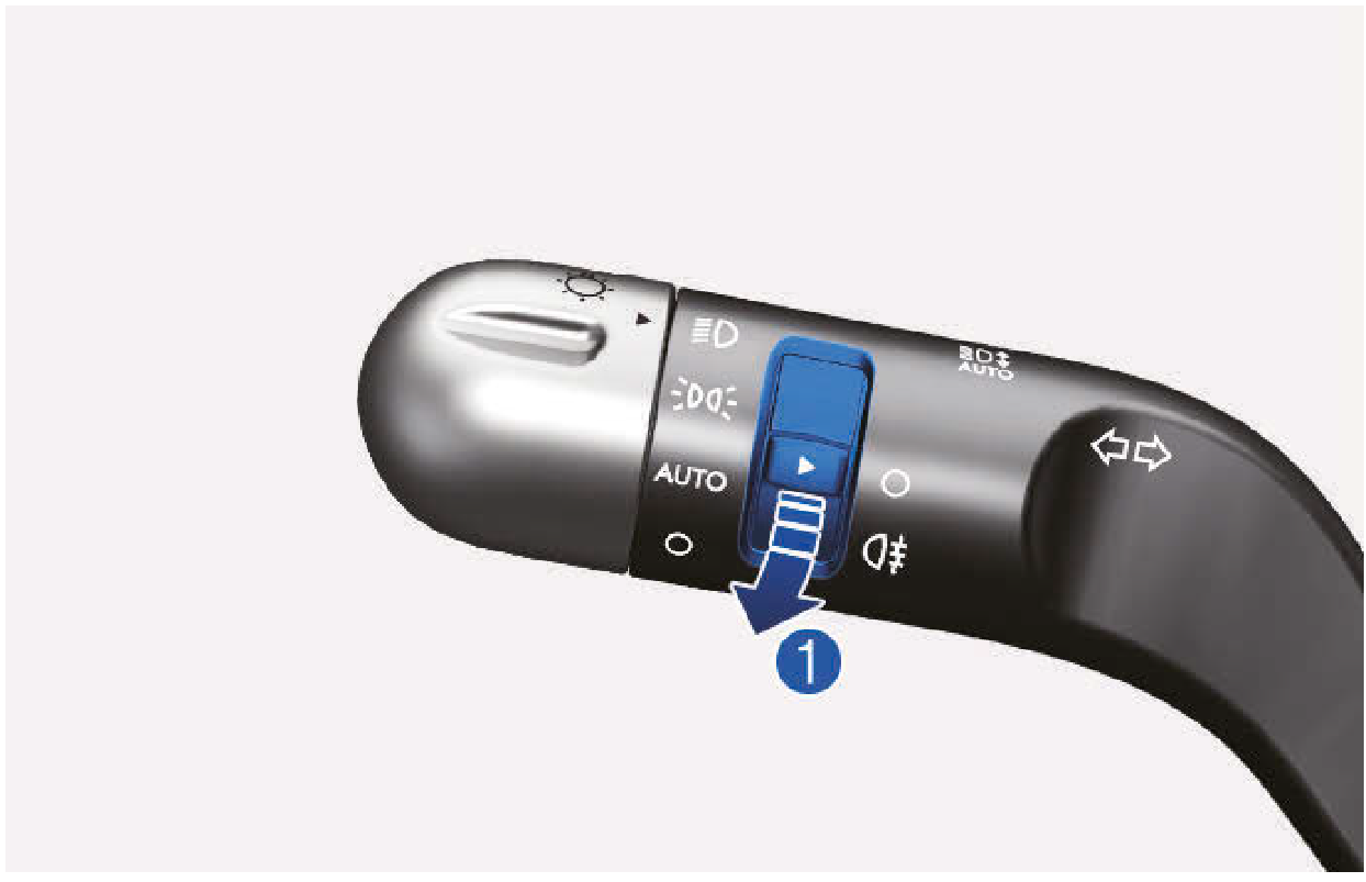 將頭燈開關設定在頭燈位置,然後將頭燈開關(1)轉到後霧燈位置。