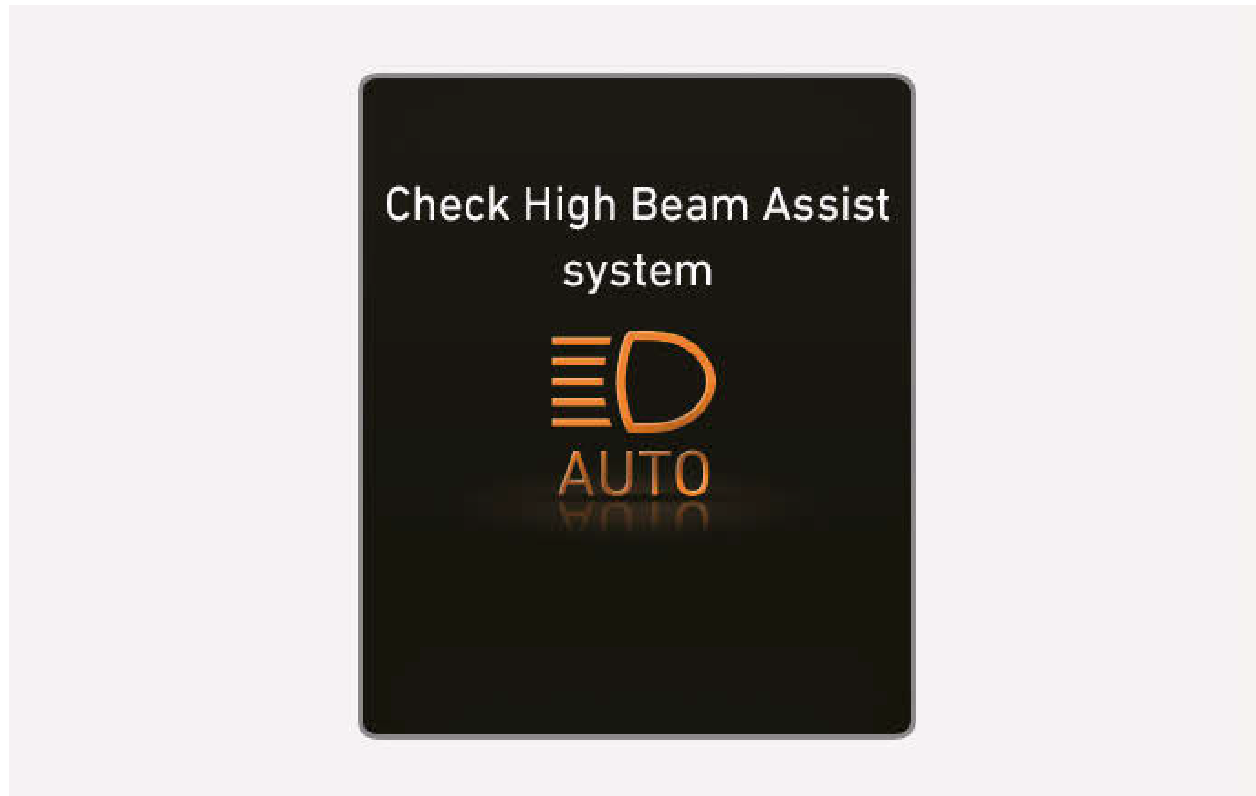 遠光燈輔助系統操作不正常時,“Check High Beam Assist system” 警告訊息將會顯示,且警告燈會在儀錶組亮起。我們建議您將車輛交由三陽汽車經銷商進行系統檢查。
