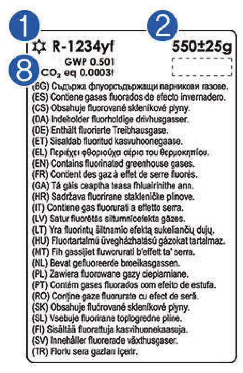 冷媒標籤上的每個符號和規格意義如下: