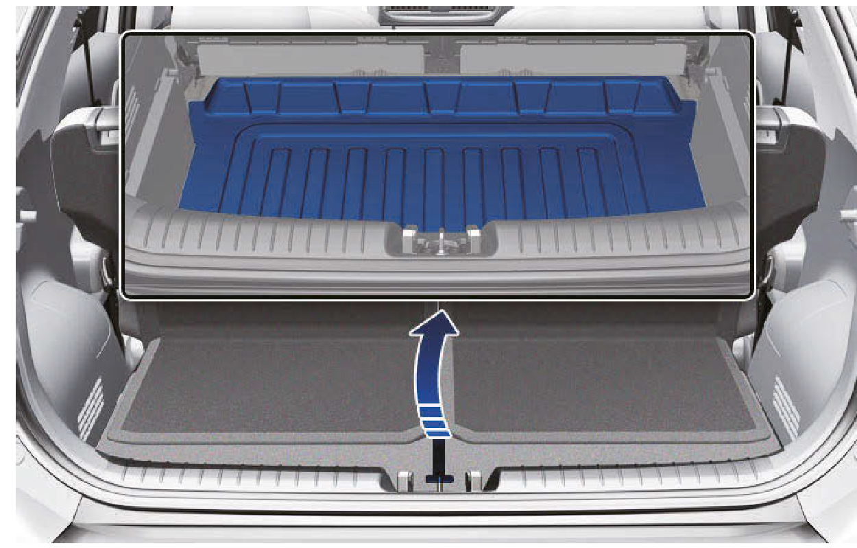 您可以將急救箱、反光三角架(前托盤)、工具等放在此托盤內以方便取用。