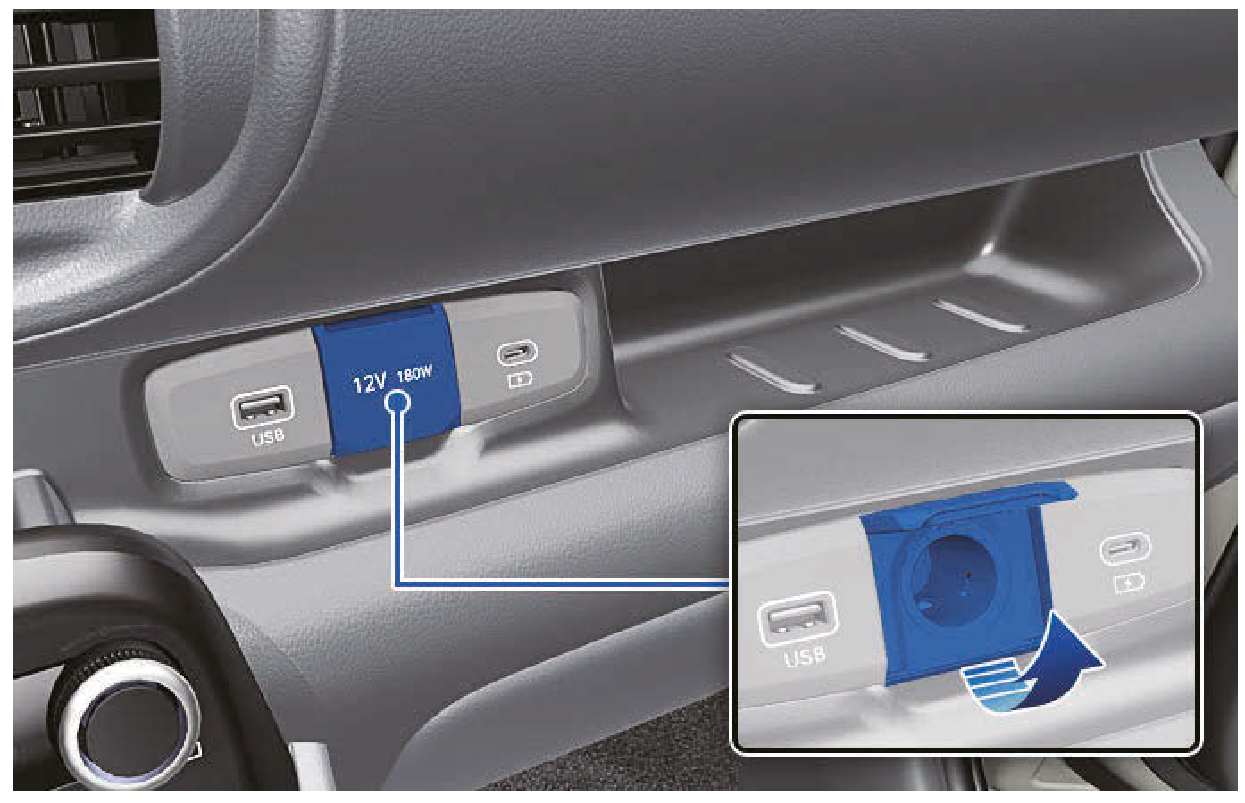 - 僅可在車輛運轉時使用電源插座,並在使用後拆開附件插頭。在車輛熄火下長時間使用附件插頭可能會導致電瓶電力消耗。