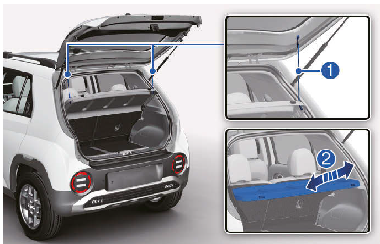 - 如果載貨區蓋板和尾門相連,則打開尾門時,載貨區蓋板會隨尾門一起上升。