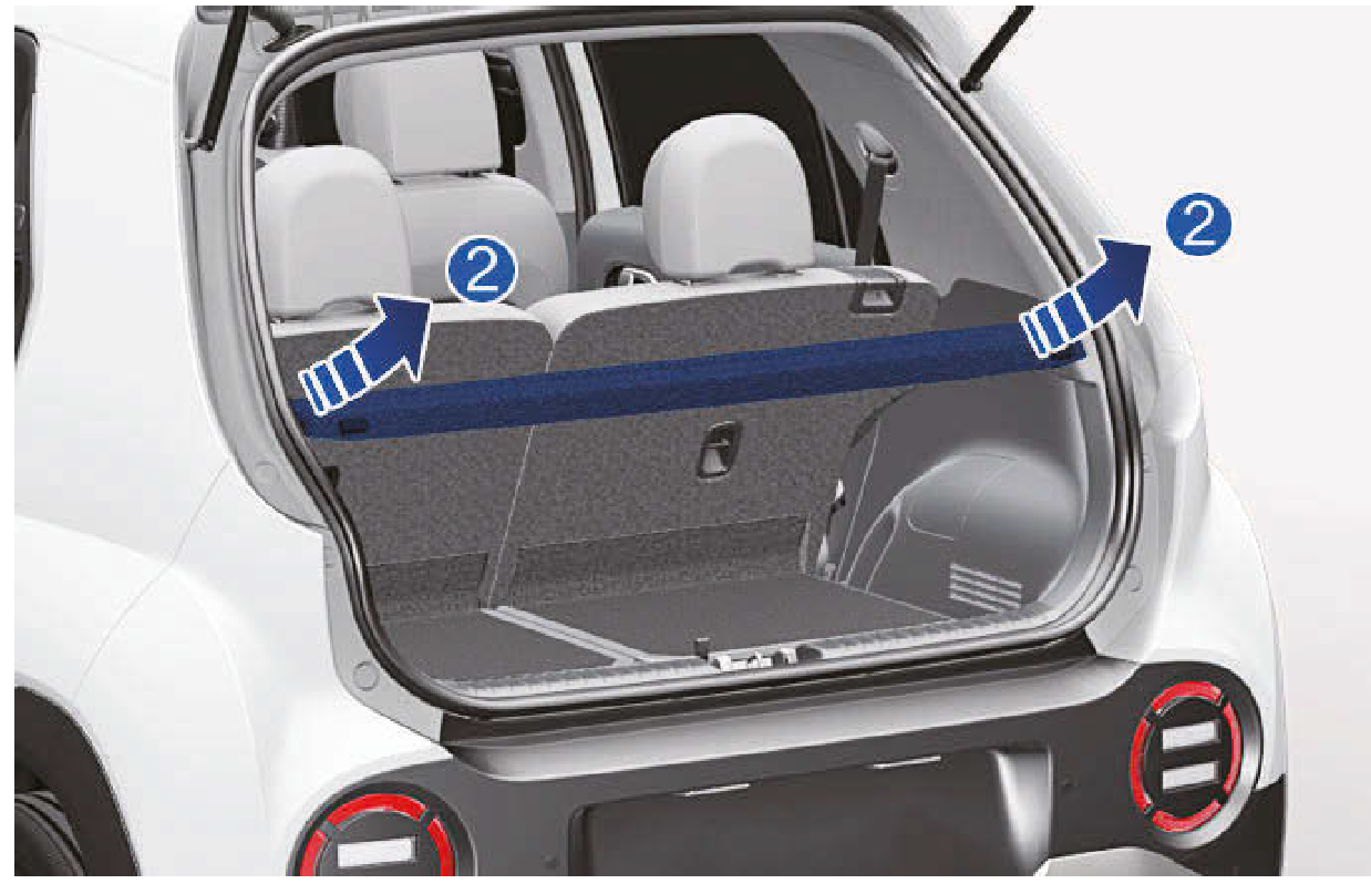 - 拆下載貨區蓋板後,您可以將載貨區蓋板固定在後座椅背,以免駕駛時分散您的注意力。