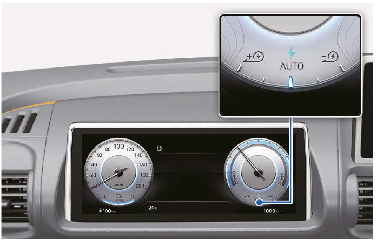 智慧再生系統會啟用,且再生煞車段位會以 “AUTO” 顯示。