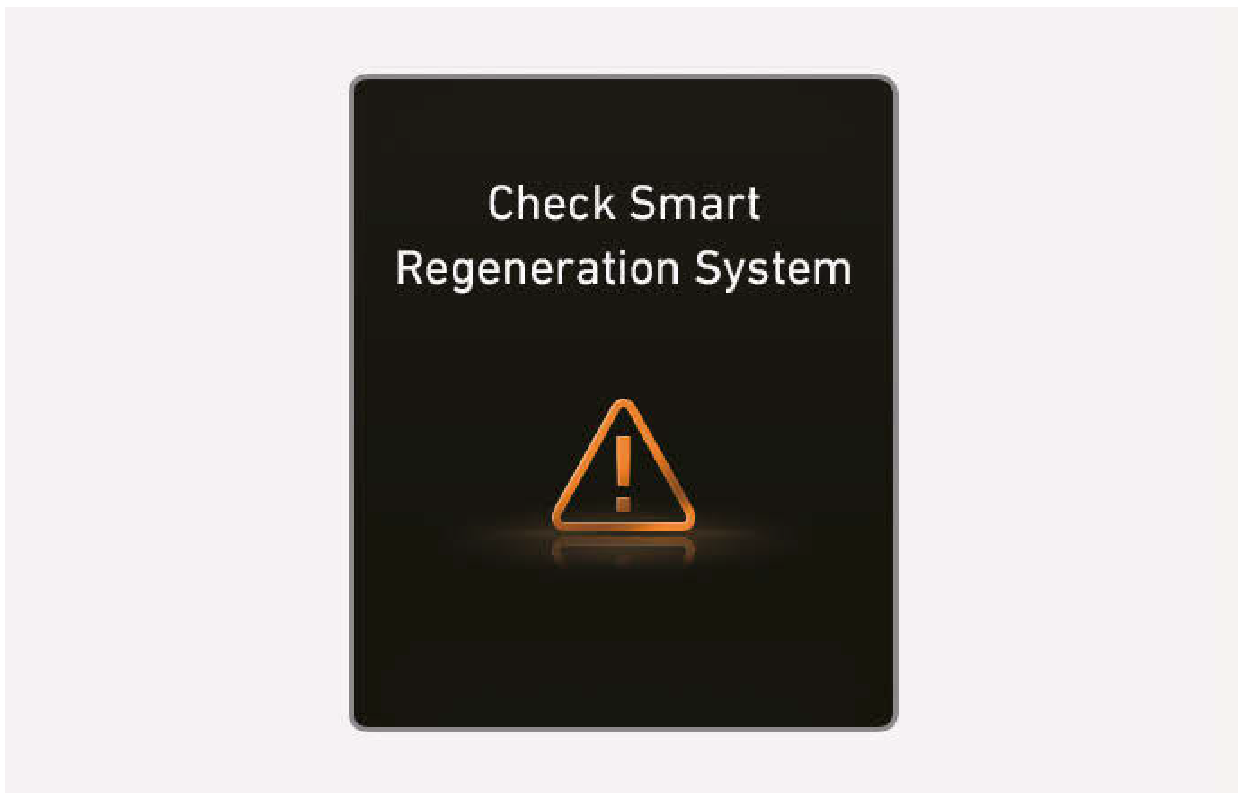 因為前感知器被異物覆蓋或其他原因造成智慧再生系統停用時,“Check Smart Regeneration System” 警告訊息將會顯示。此外,再生煞車段位會顯示,而非 “AUTO”。