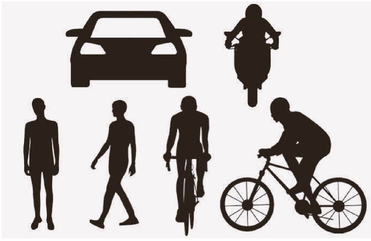 - 行人或自行車騎士穿著很容易融入背景的衣服,使其難以偵測