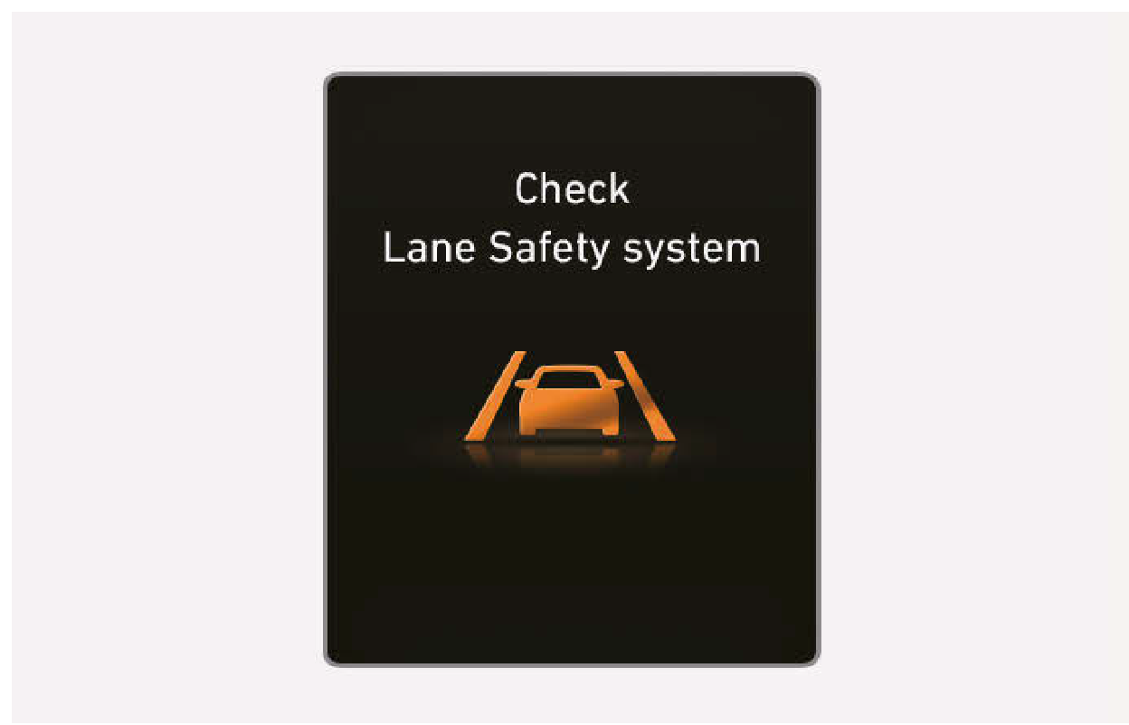 車道維持輔助系統操作不正常時,“Check Lane Safety system” 警告訊息以及黃色的車道維持輔助系統()警告燈會在儀錶組亮起。如果發生此狀況,我們建議您將車輛交由三陽汽車經銷商檢查。