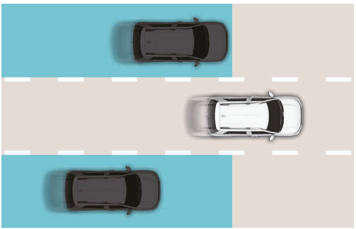 盲點碰撞避免輔助可偵測駕駛人盲點區域內接近的車輛,並在可能發生撞擊時,以警告訊息和警告聲警告駕駛人。