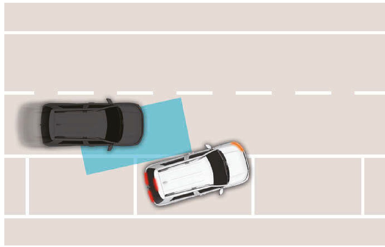 盲點碰撞輔助可幫助偵測並告知駕駛人盲點區域內有車輛以高速接近。