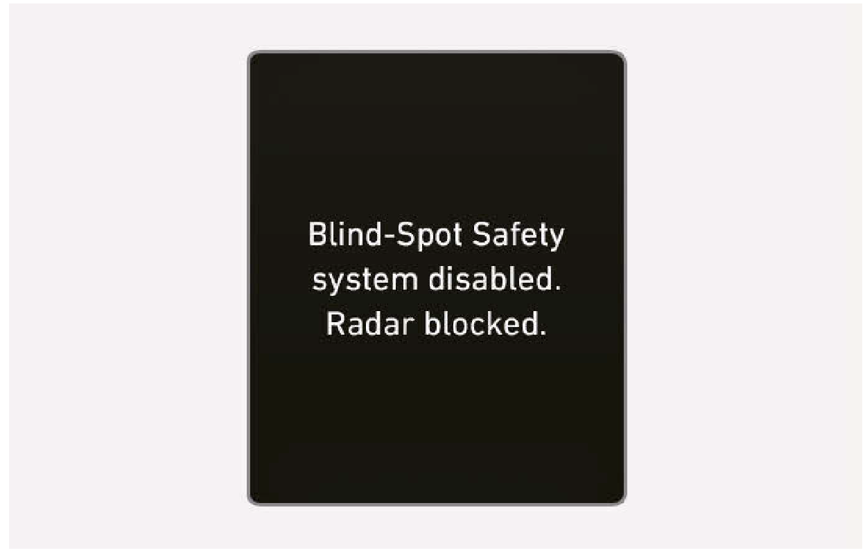 如果發生此狀況,“Blind-Spot Safety system disabled. Radar blocked.” 警告訊息會在儀錶組顯示。