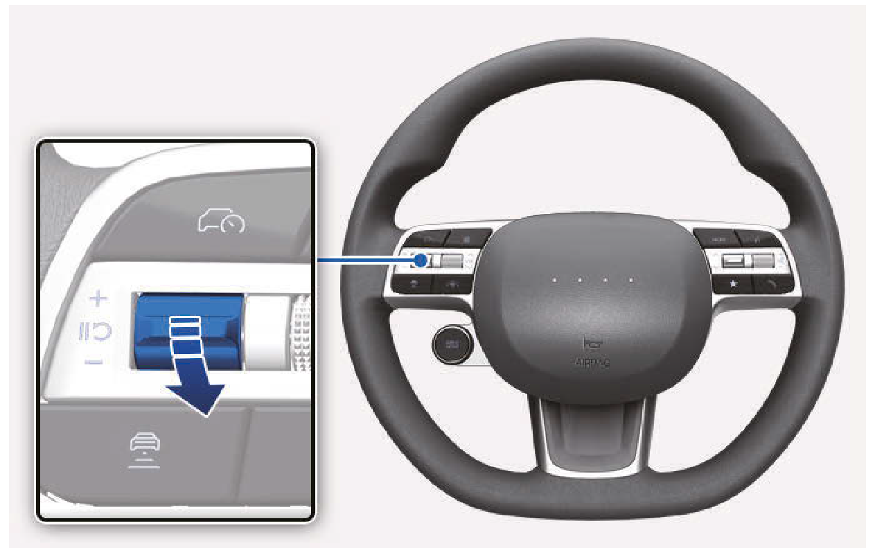 功能暫停後欲恢復手動速限輔助時,可操作+、﹣、開關。