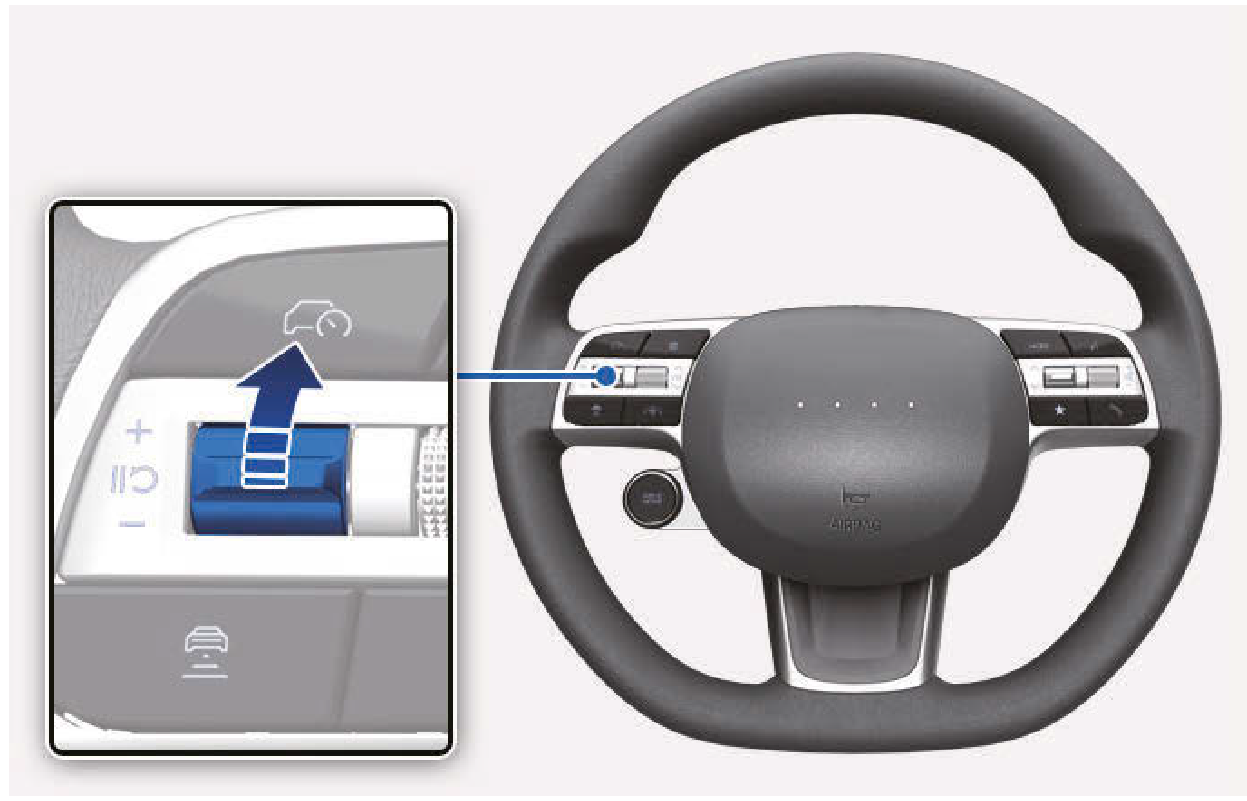 在需要的速度時,按住駕駛輔助()按鈕。速限()指示燈會在儀錶組亮起。