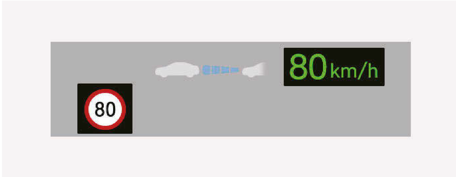 智慧速限輔助將會藉由 “顯示速限”、“警告超速” 和 “變更設定的速度” 進行警告和控制車輛。