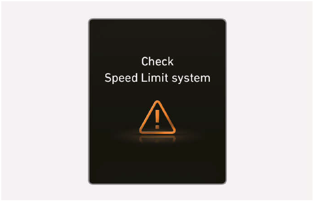 智慧速限輔助無法正常操作時,“Check Speed Limit system” 警告訊息會在儀錶組顯示幾秒鐘,且主()警告燈和速限()警告燈會在儀錶組亮起。如果發生此狀況,我們建議您將車輛交由三陽汽車經銷商檢查。
