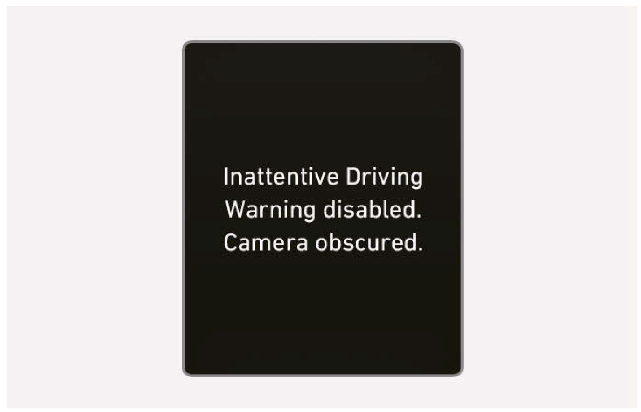 - 如果攝影機被阻擋或故障時將車輛熄火並重新啟動,則該狀況會維持。因此,駕駛人注意力警告可能無法正常操作。