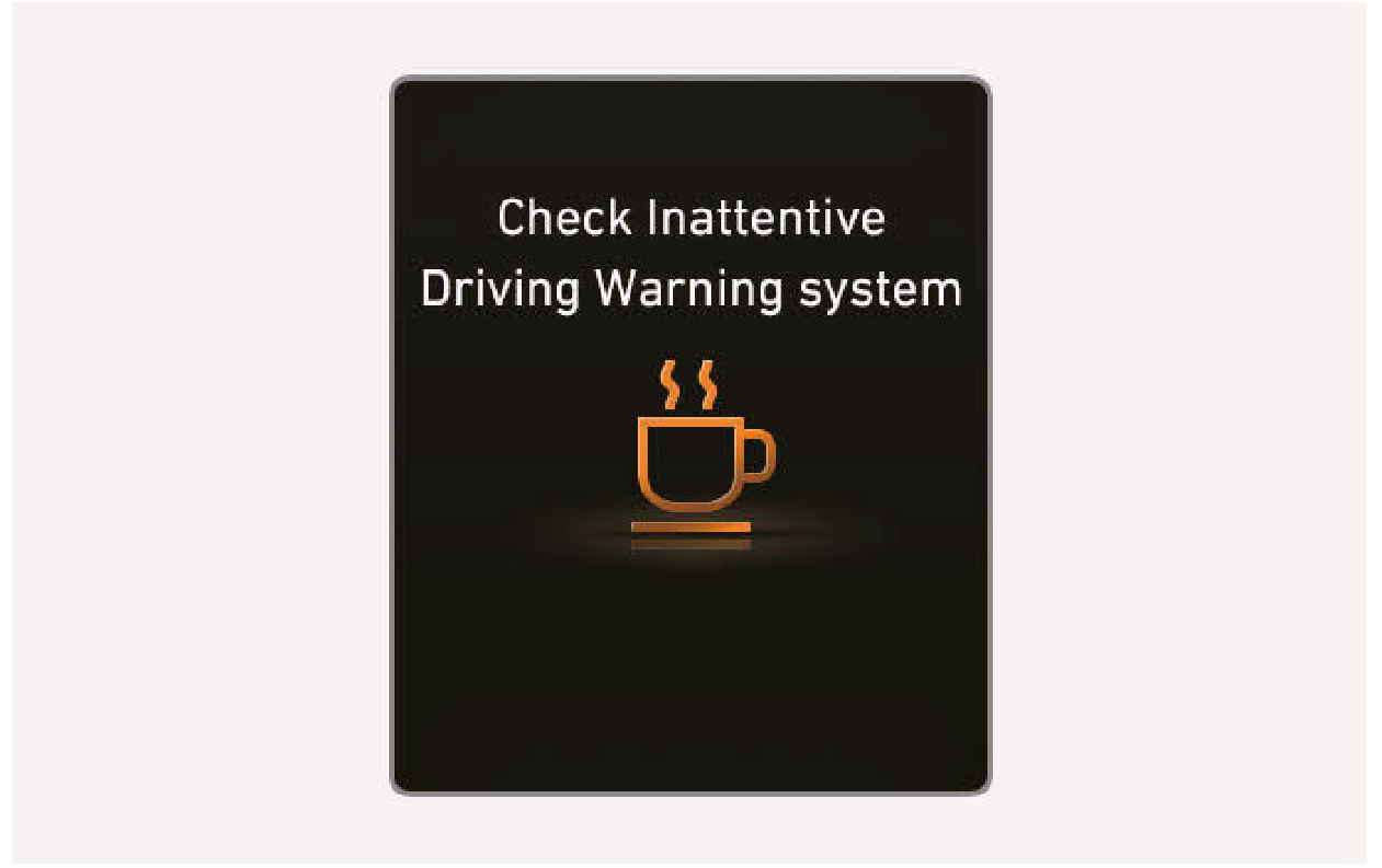 駕駛人注意力警告無法正常操作時,“Check Inattentive Driving Warning system” 警告訊息會在儀錶組顯示幾秒鐘,且主()警告燈和駕駛注意力不集中()警告燈會在儀錶組亮起。如果發生此狀況,我們建議您將車輛交由三陽汽車經銷商檢查。
