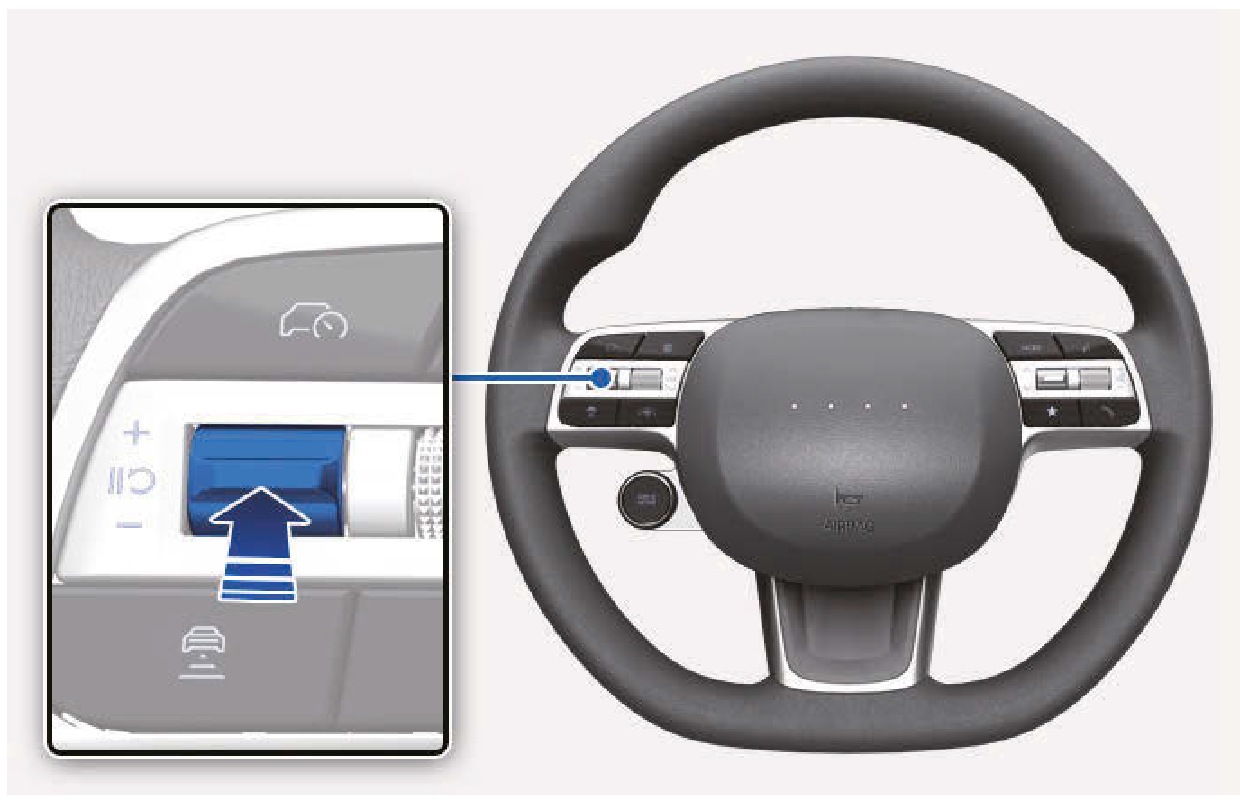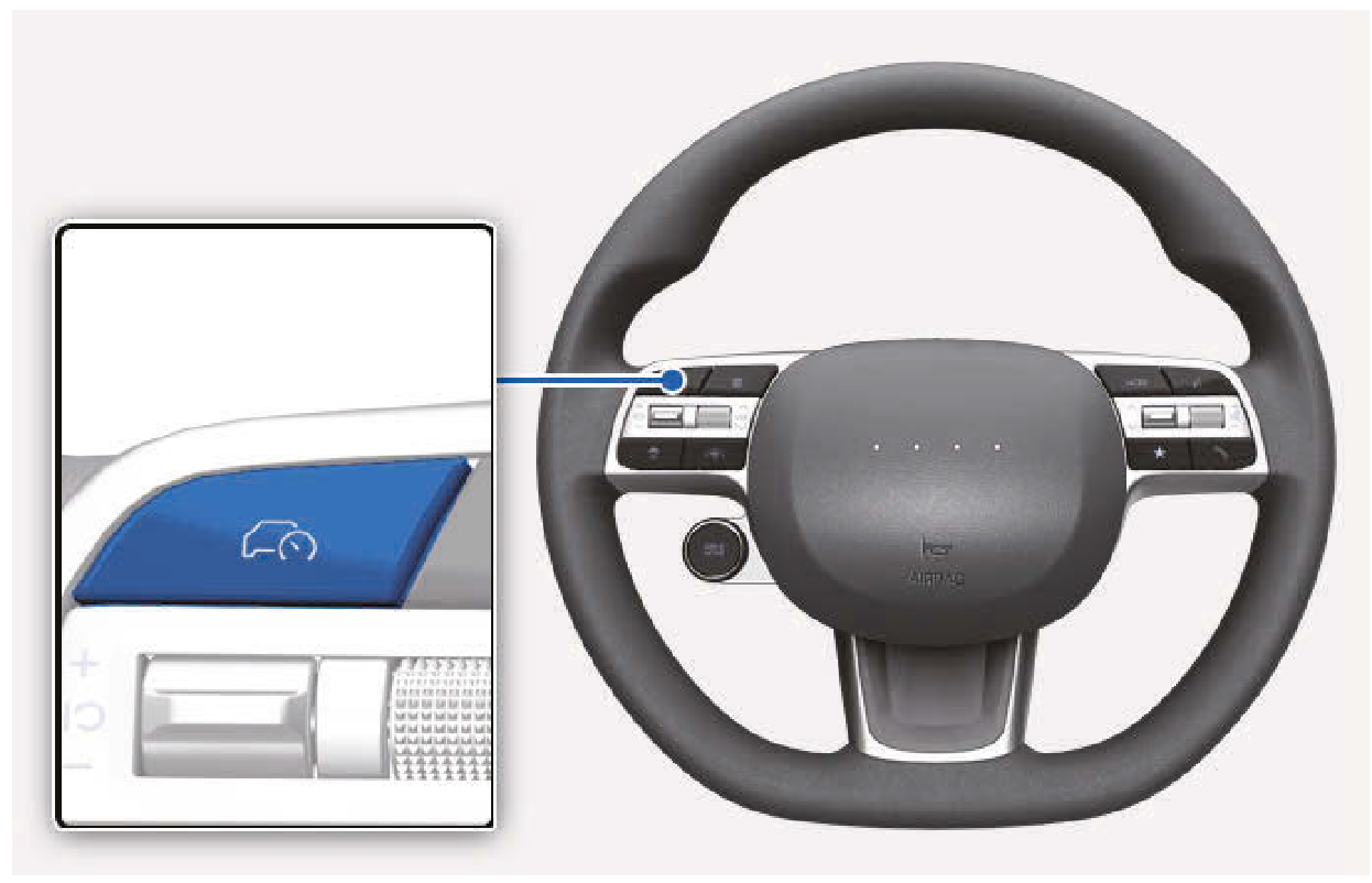 - 在需要的速度時按下駕駛輔助按鈕。設定的速度和定速()指示燈會在儀錶組亮起。