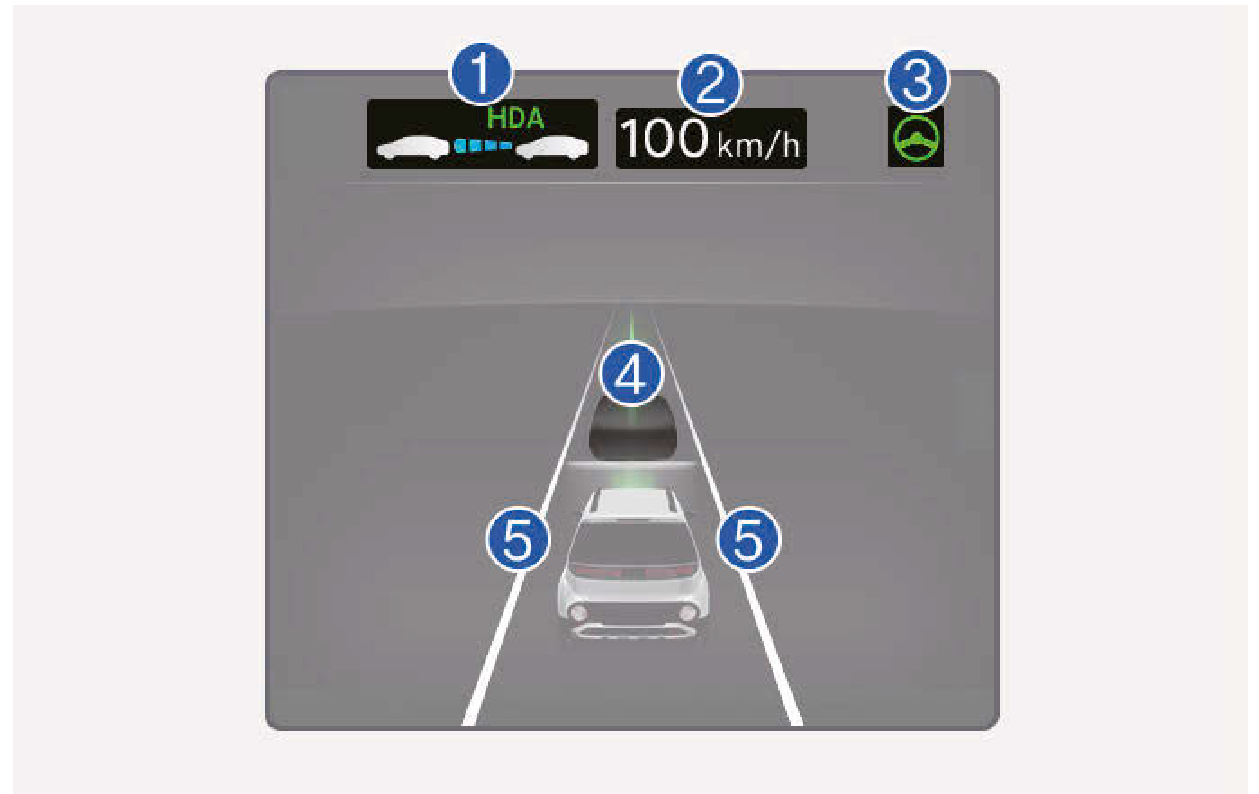 您可在儀錶組的駕駛輔助查看,確認高速公路駕駛輔助的操作狀態。更多細節,請參閱第4章的 “儀錶組顯示器(B型)” 一節。