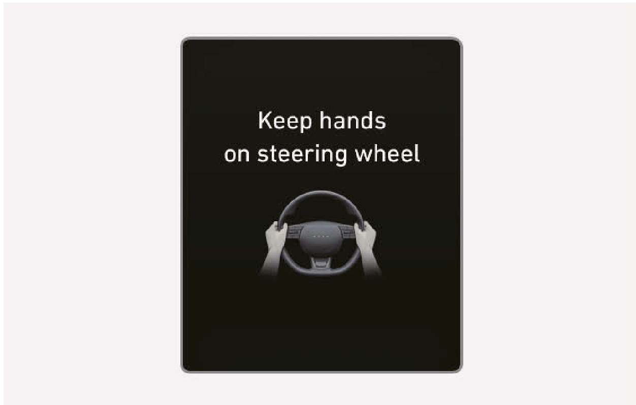 如果駕駛人將手從方向盤移開幾秒鐘,“Keep hands on steering wheel” 警告訊息將會顯示,且警告聲將會分階段響起。