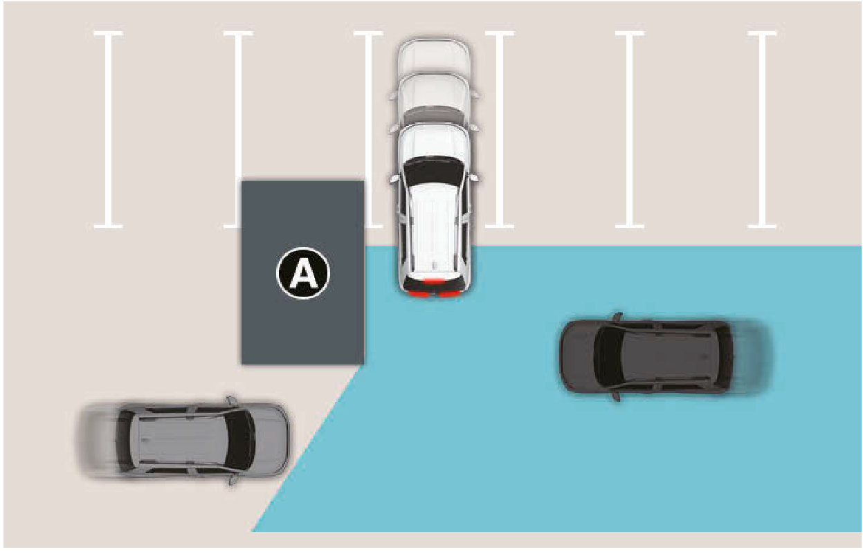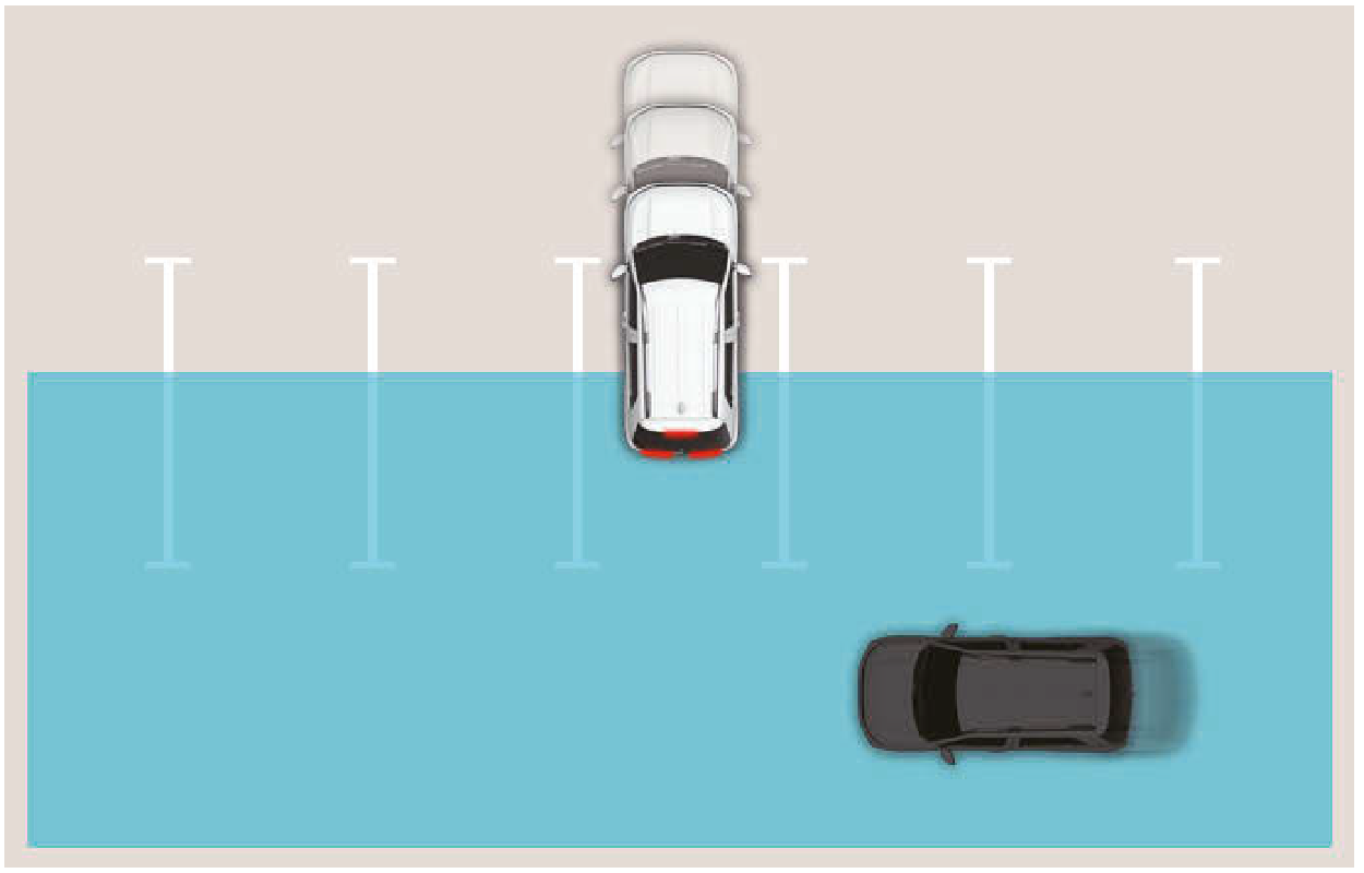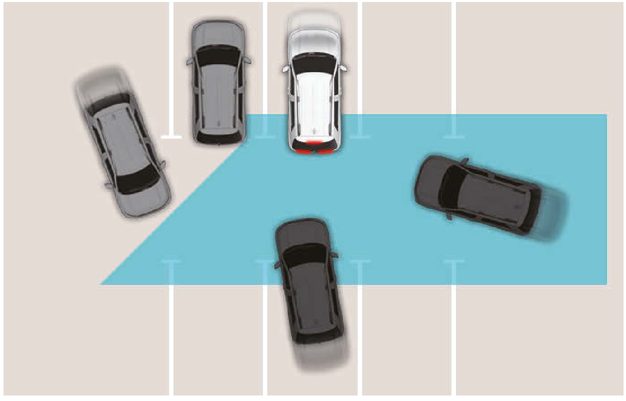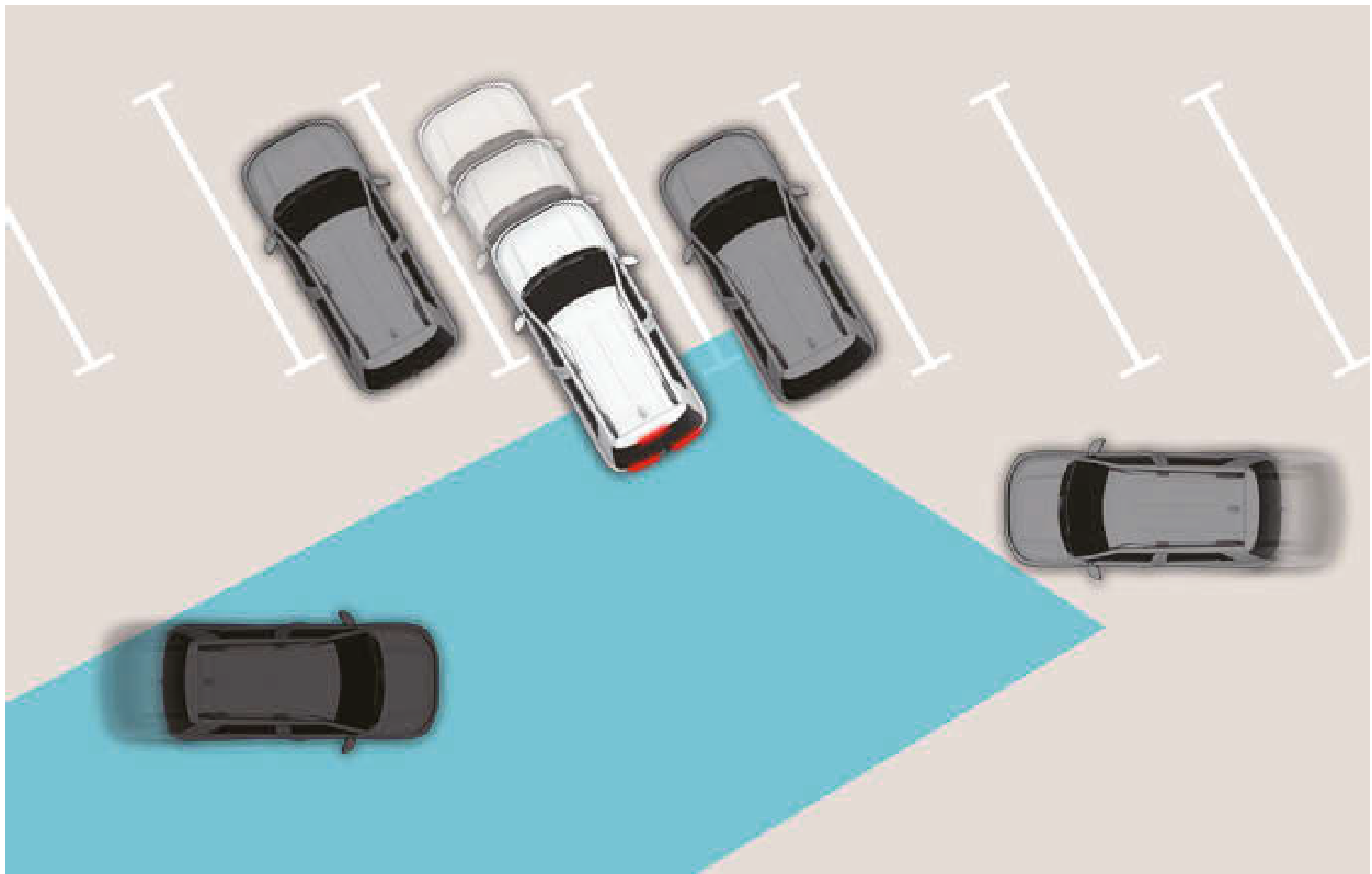 - 車輛啟動後,在未偵測到任何物體的區域(例如:開闊地形),後方交會碰撞避免輔助可能無法正常操作。